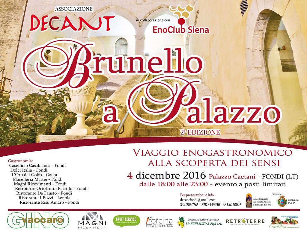I prodotti e le eccellenze della gastronomia Pontina incontreranno domenica 4 dicembre 2016 il Principe dei vini, il Brunello di Montalcino. Sarà Davide Bonucci di Enoclub Siena a condurre il viaggio attraverso il mondo del brunello, prodotto, secondo il disciplinare divenuto ufficiale nel 1988, da uve Sangiovese grosso nel comune di Montalcino (SI).
