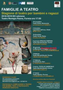Domenica 18 novembre alle ore 17:00 al Teatro Remigio Paone ritorna “Famiglie a teatro”, la stagione di teatro per ragazzi promossa dal Teatro Bertolt Brecht di Formia all’interno del progetto “Officine Culturali” della Regione Lazio e del riconoscimento del MIBAC.