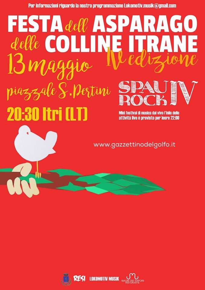 Torna, a Itri, il consueto appuntamento con la “Festa dell’Asparago Selvatico delle colline itrane”, organizzata dai ragazzi dell’associazione culturale “Lokomotiv Musik”.