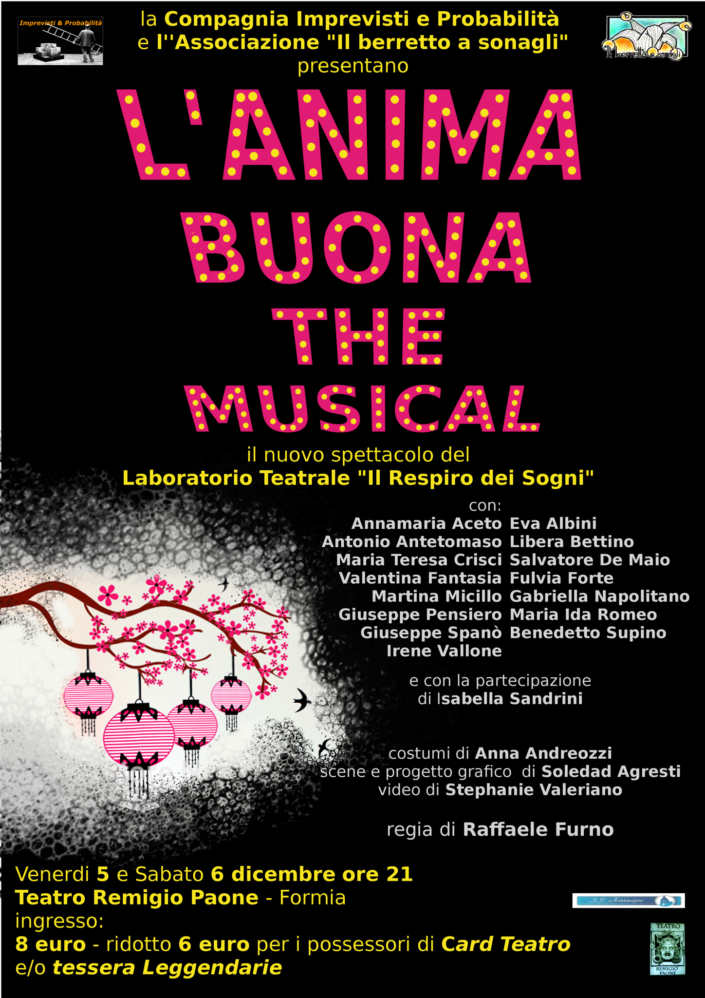 In scena la compagnia Imprevisti e Probabilità con la regia di Raffaele Furno con “L’ANIMA BUONA – THE MUSICAL” , il lavoro conclusivo del Laboratorio Teatrale 2013/2014 “Il Respiro dei Sogni” 2013-2014 con 15 allievi di diverse età.