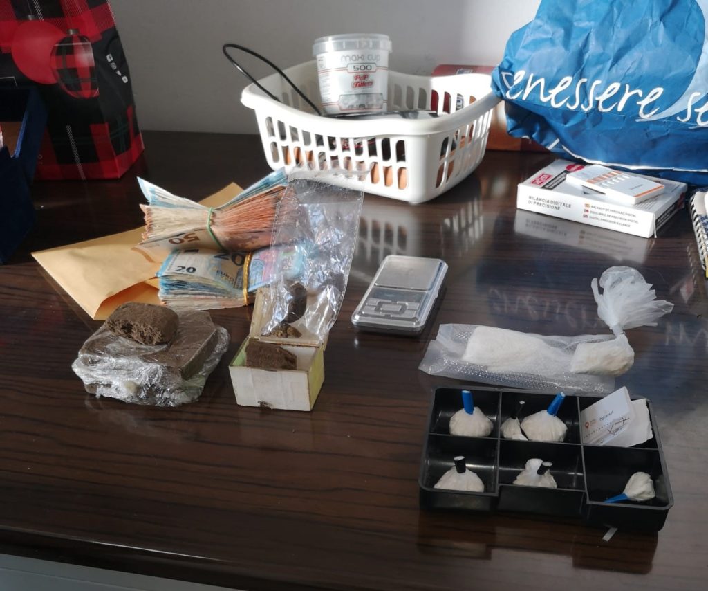 Complessivamente venivano sottoposti a sequestro oltre 300 grammi di sostanza stupefacente del tipo cocaina e hashish, denaro contante pari a 11 Mila euro, tutto il materiale occorrente al taglio dello stupefacente e 8 apparati cellulari e alcuni fogli manoscritti (riportanti nominativi e importi, potenzialmente riconducibili alla cessione delle sostanze).