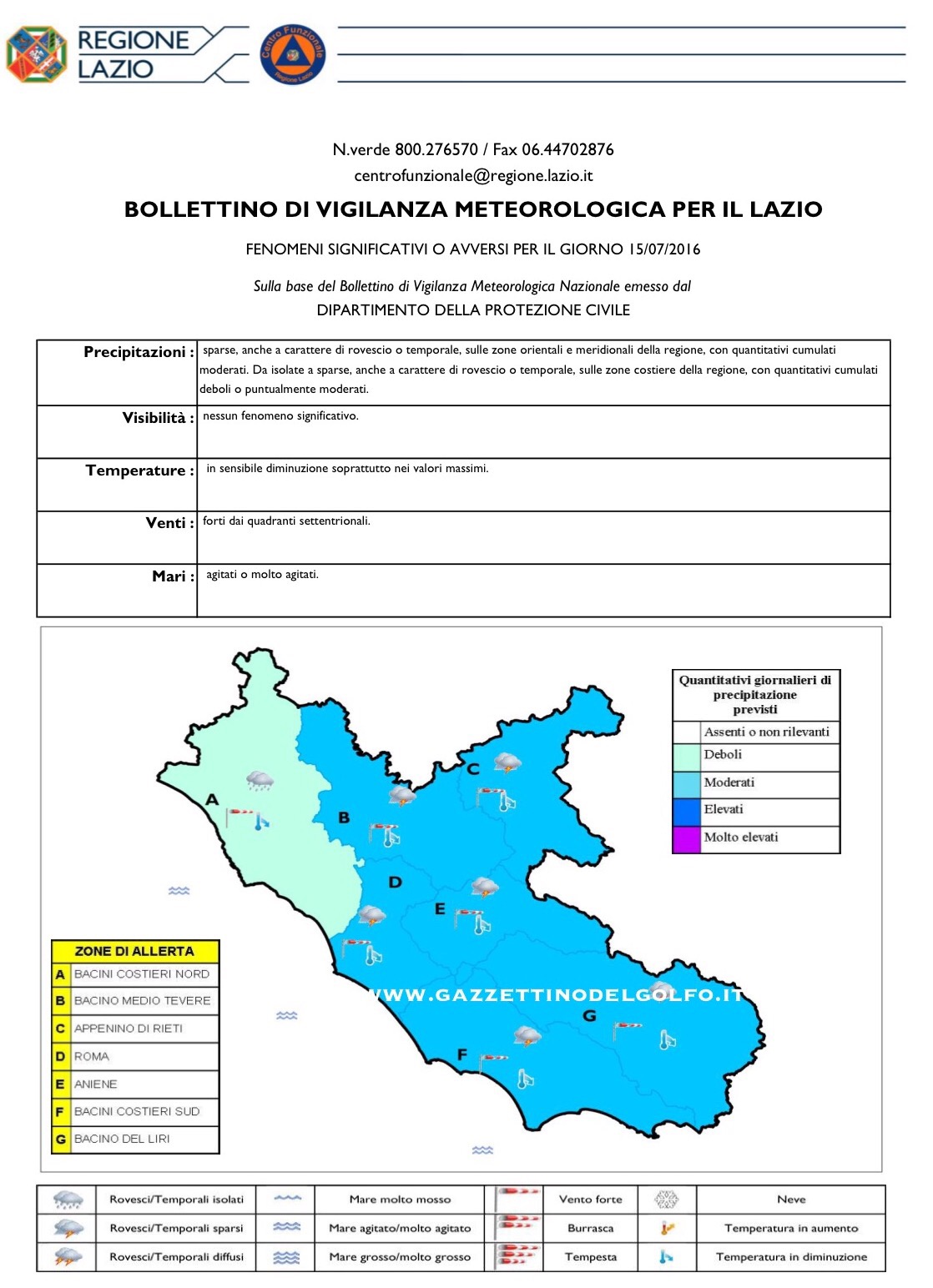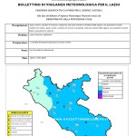 - Precipitazioni: sparse, anche a carattere di rovescio o temporale, sulle zone orientali e meridionali della regione, con quantitativi cumulati moderati. Da isolate a sparse, anche a carattere di rovescio o temporale, sulle zone costiere della regione, con quantitativi cumulati deboli o puntualmente moderati.