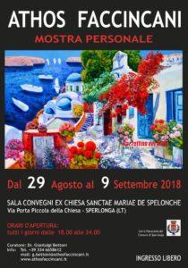 Da Mercoledì 29 Agosto a domenica 9 Settembre 2018 il Maestro Athos Faccincani espone presso la Sala Convegni ex Chiesa Sanctae Mariae de Spelonche a Sperlonga.