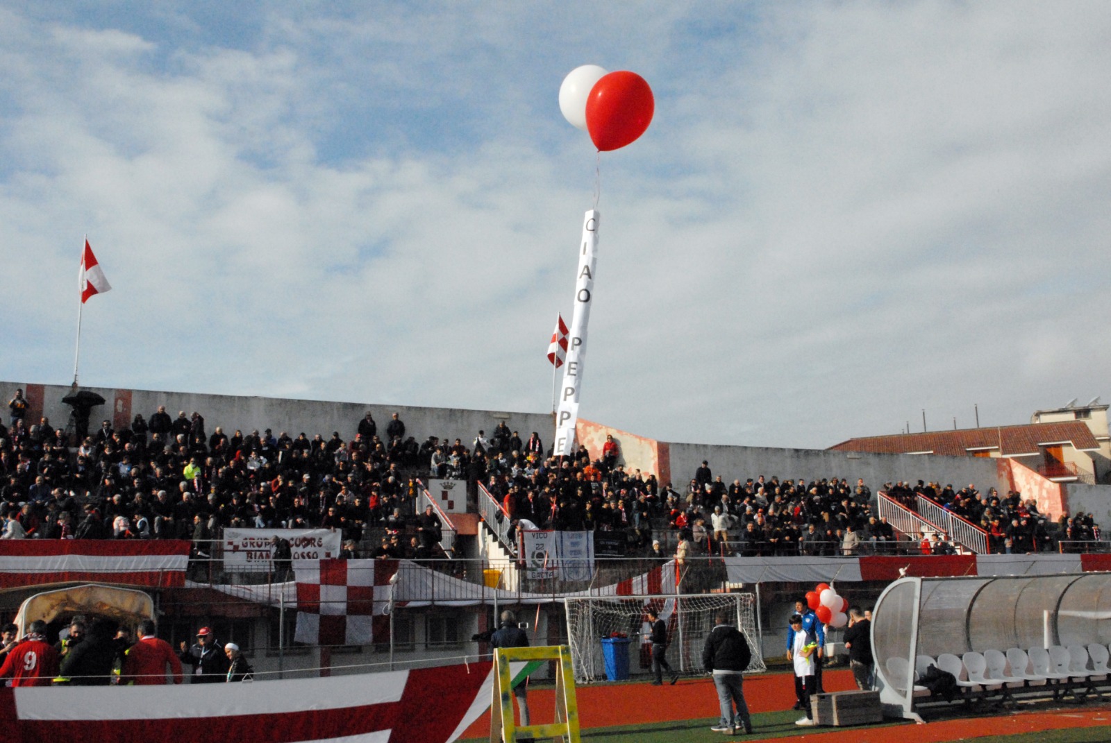 Domenica iniziata con la consegna di fotografie, targhe ricordo e maglia per due protagonisti assoluti dell’ultima grande promozione in D: Franco Albano e Nilo Santucci, omaggiati sia dalla tifoseria che dalla società biancorossa.