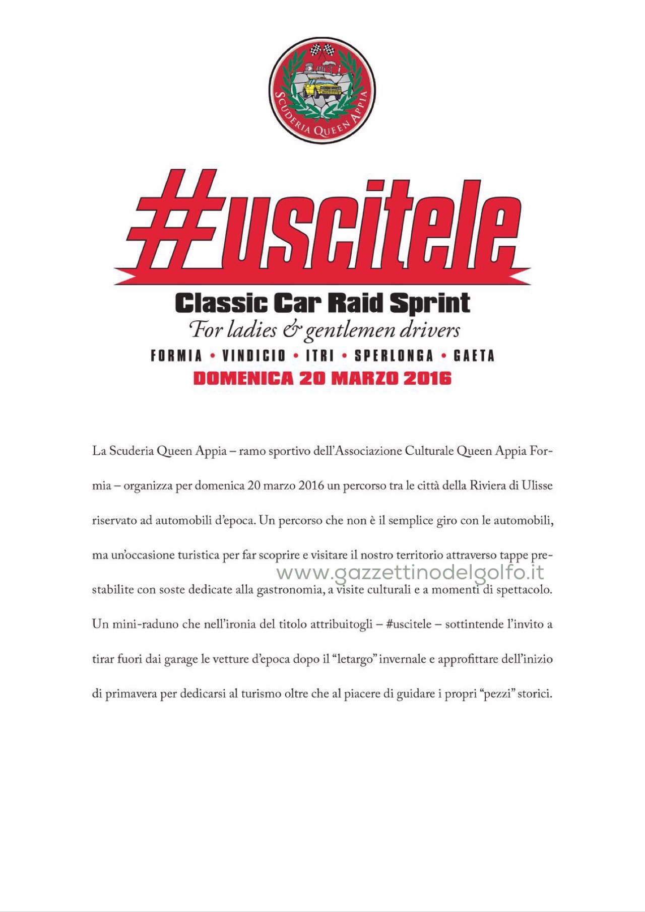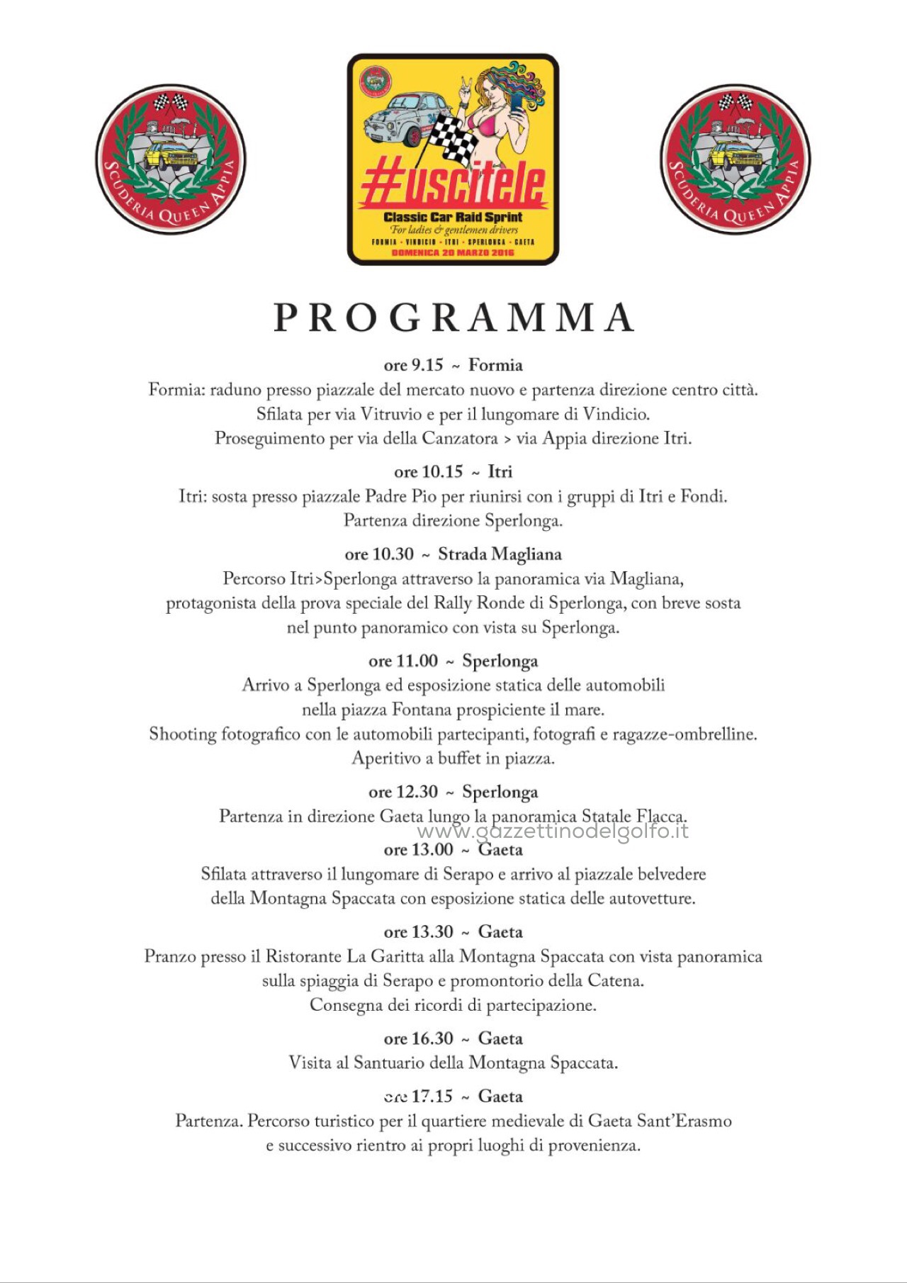 Gli amici fraterni della Scuderia Queen Appia di Formia organizzano per domenica 20 marzo un particolare, sicuramente interessante e divertente giro, con le automobili d’epoca tra le città della Riviera di Ulisse.