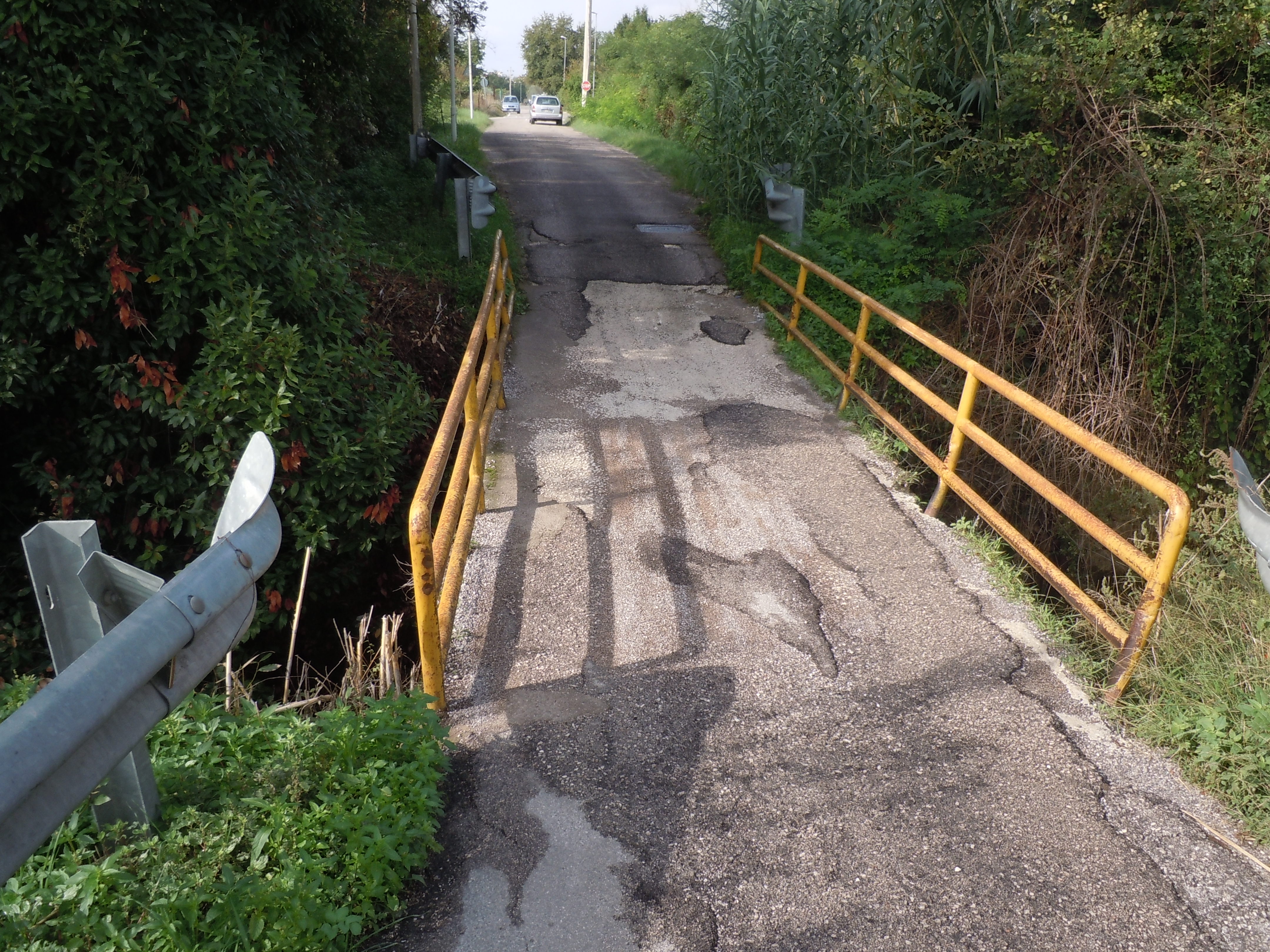 - ristrutturazione del ponte sul fossato ‘Acqualonga’, attraversabile solo da auto di medie dimensioni e sprovvisto di adeguate protezioni laterali. Per sostenere il transito delle vetture sarà realizzato un ponte largo 9 metri e lungo circa 12, con struttura portante in travi da ponte su fondazioni a palo. Tale soluzione consentirà di evitare sia l’intervento sugli argini del fosso che la demolizione delle attuali travate che fungono da sostegno-protezione.