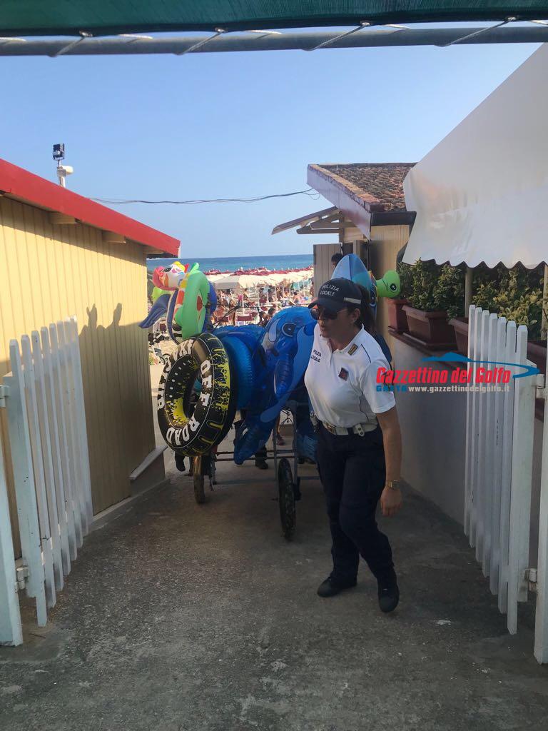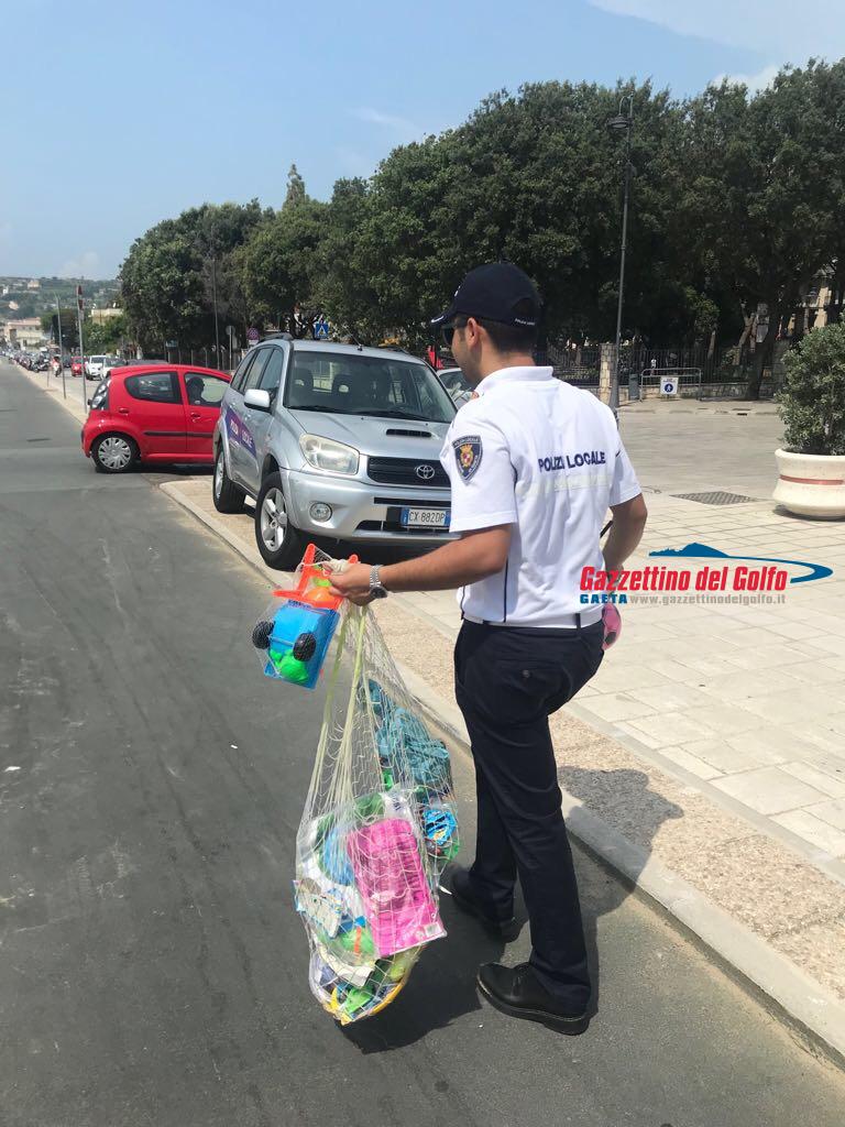 Ancora sequestri a Gaeta, grande lavoro della Polizia Locale che continua a pattugliare le spiagge contrastando chi non rispetta le regole. Questo pomeriggio sequestri di gonfiabili e oggetti vari posti in vendita sulla battigia, diversi cittadini extracomunitari alla vista degli agenti si sono allontanati frettolosamente.