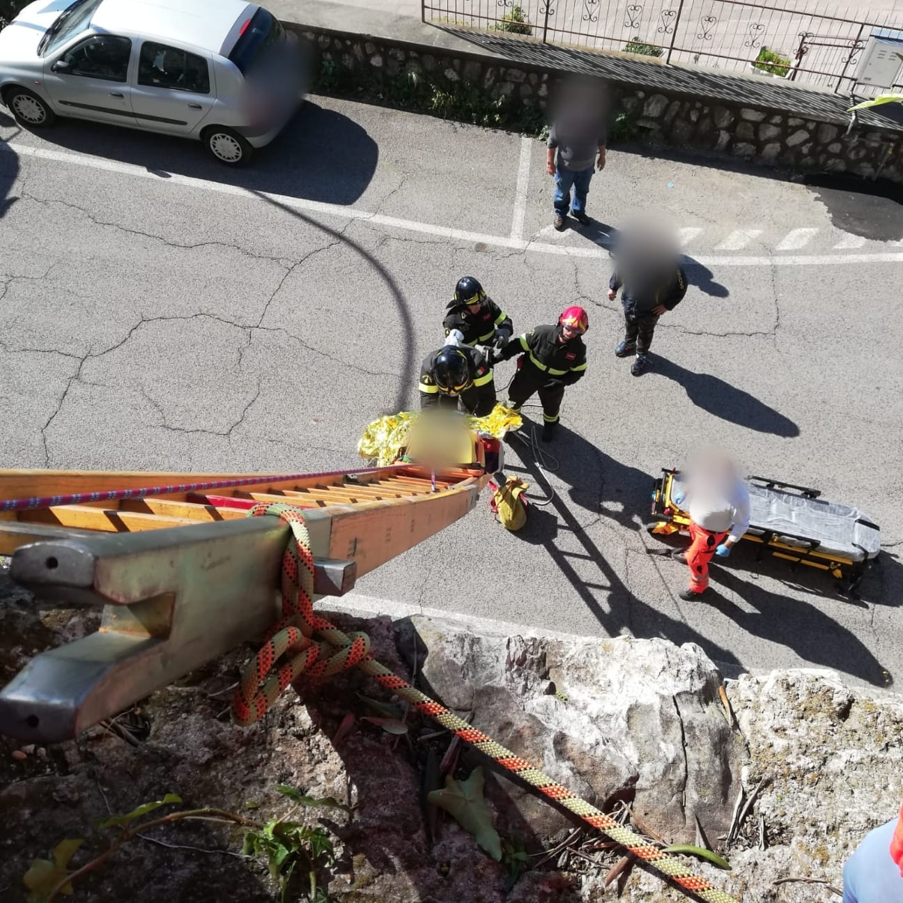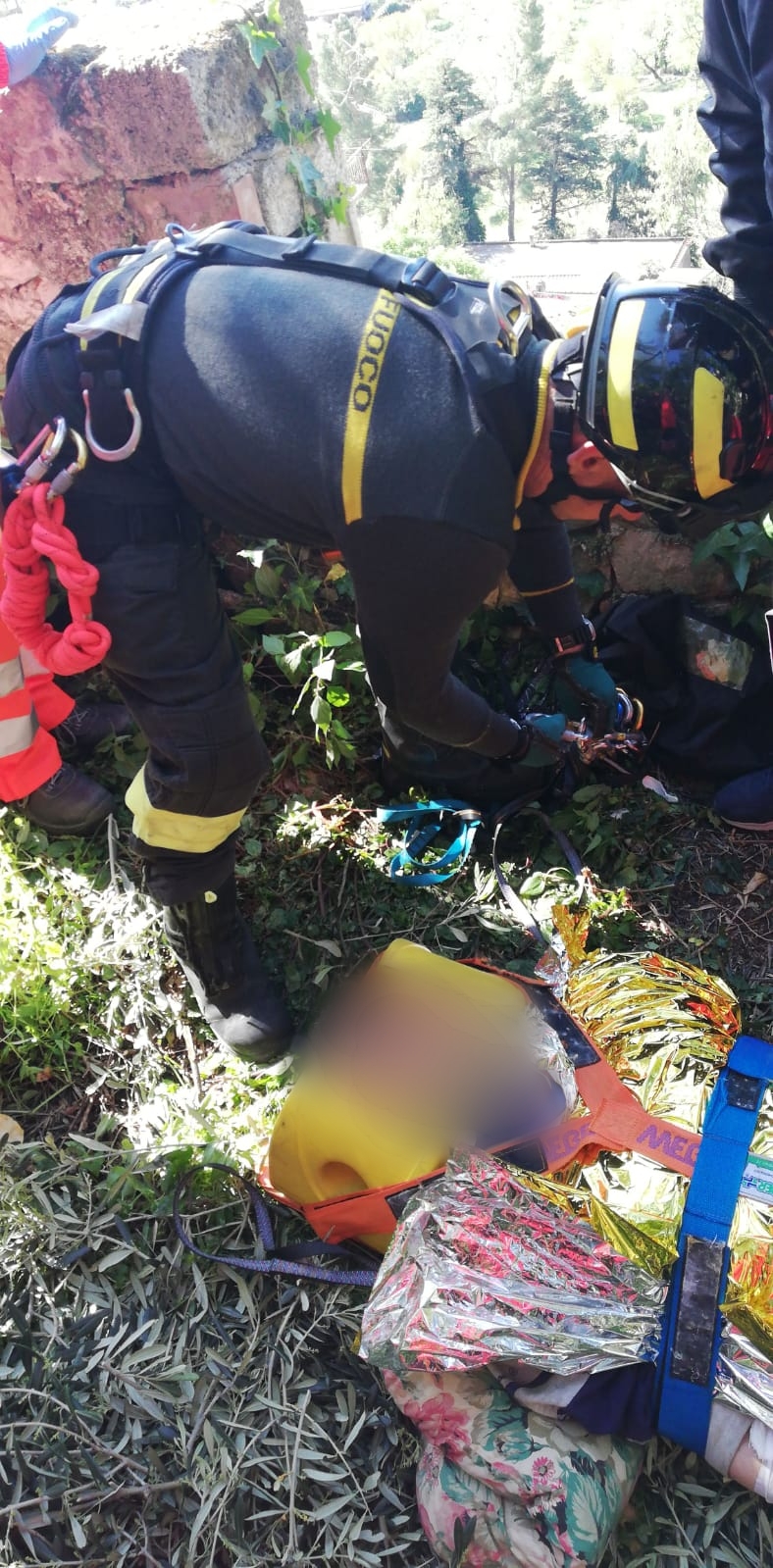 L’intervento del personale dei Vigili del Fuoco si è reso necessario per traslare il ferito dal terreno all’ambulanza scendendo una parete di 9 mt d’altezza.
