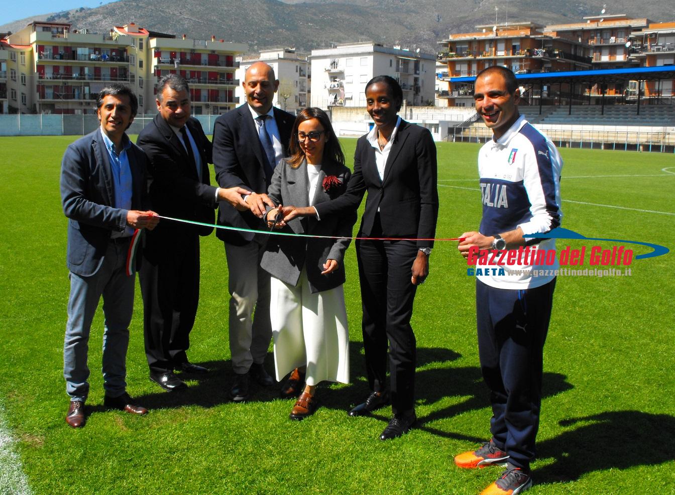 Accompagnati dal Direttore del CPO Davide Tizzano, i relatori della conferenza hanno infine inaugurato il nuovo campo dello stadio “Nicola Perrone” ammodernato dal Coni. Manto erboso in perfette condizioni e tribune in corso di allestimento. Tanti buoni motivi per fare del centro Coni di Formia un punto di riferimento anche per la Federazione Italiana Giuoco Calcio.