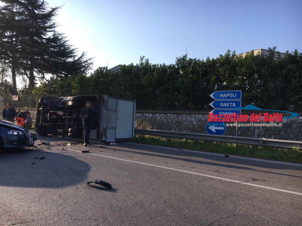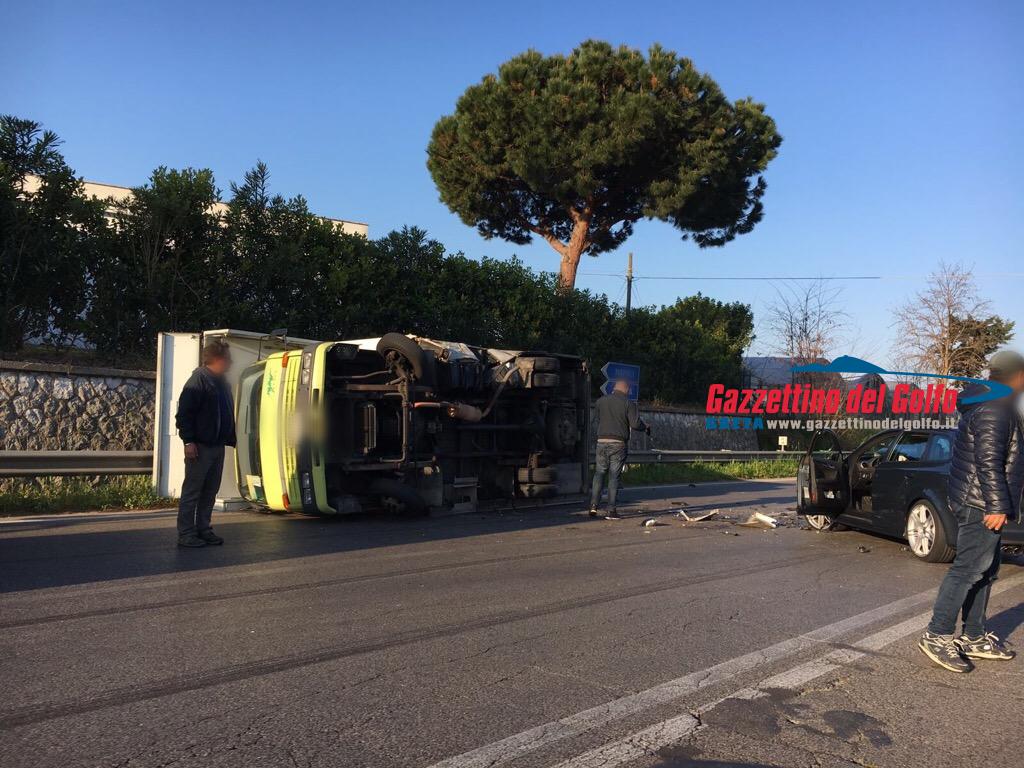 Incidente tra una vettura è un mezzo pesante questa mattina intorno alle 07 sulla SR 213 Flacca altezza lago di Fondi. GUARDA LE FOTO di Letizia Vella