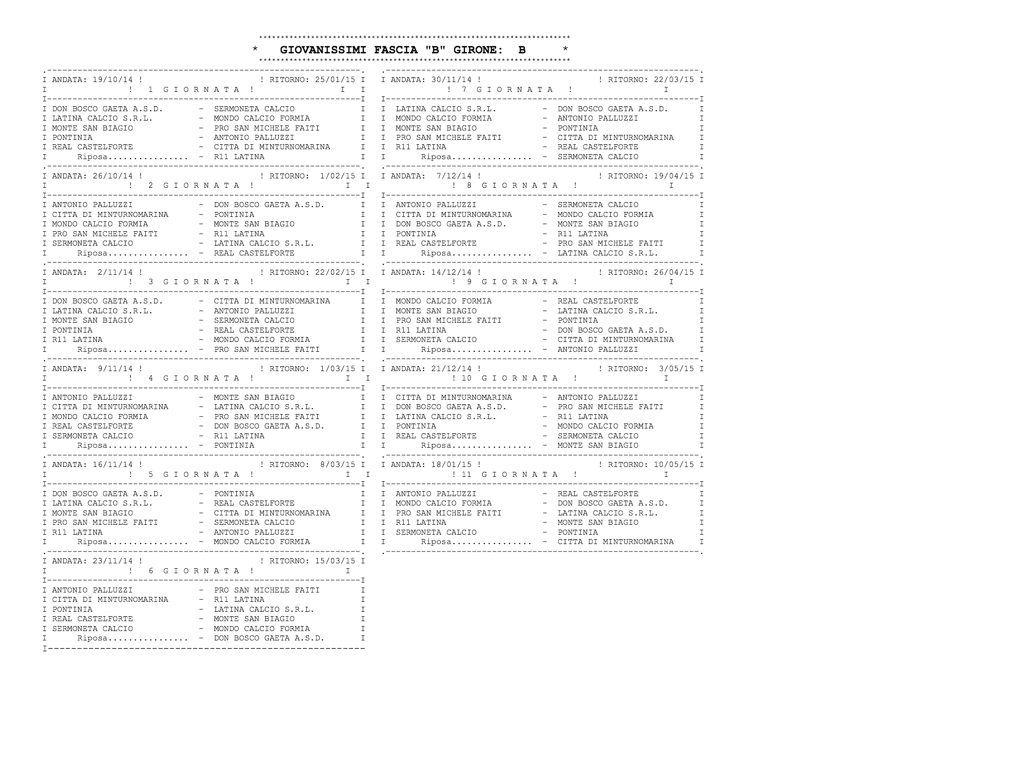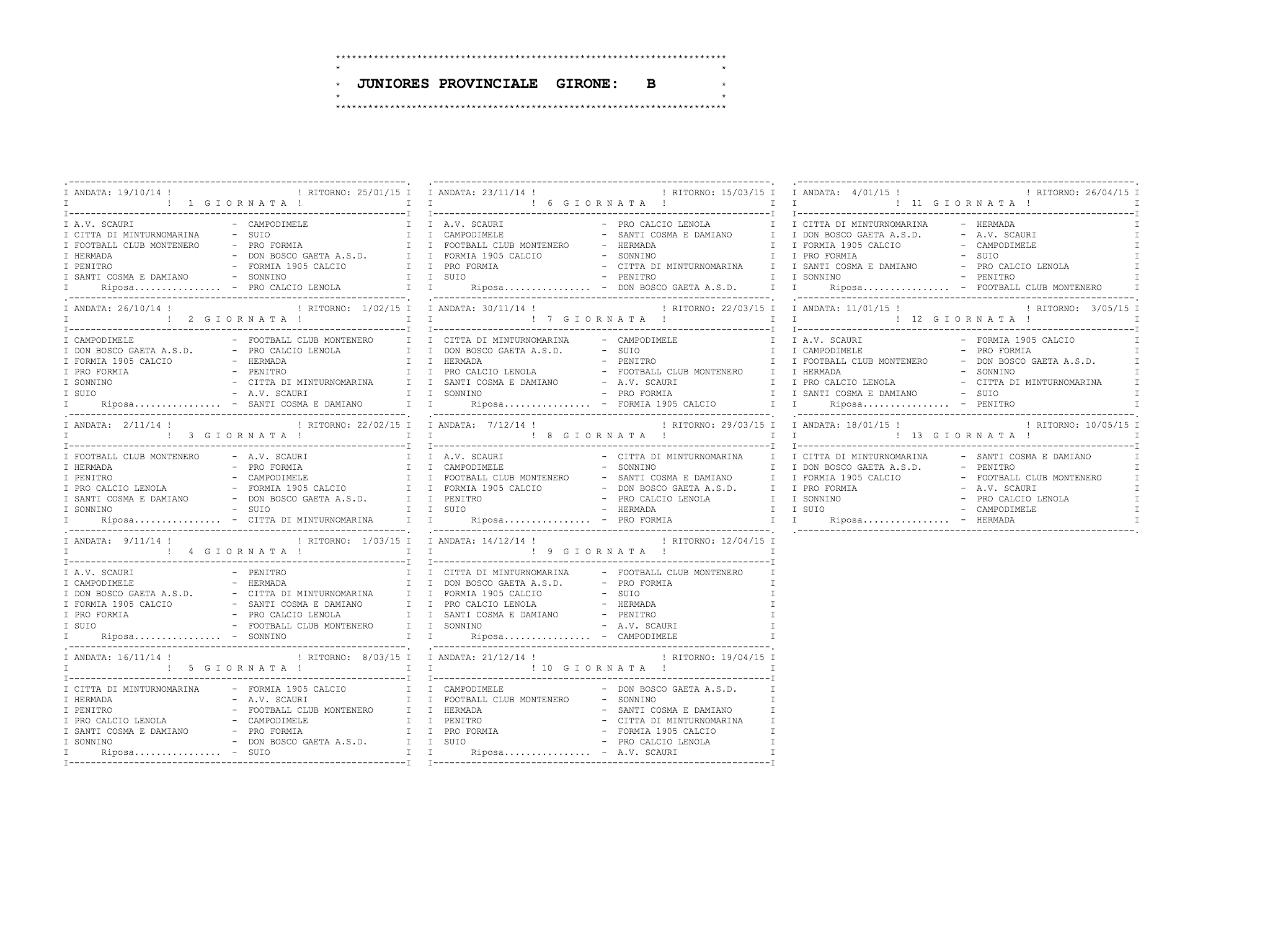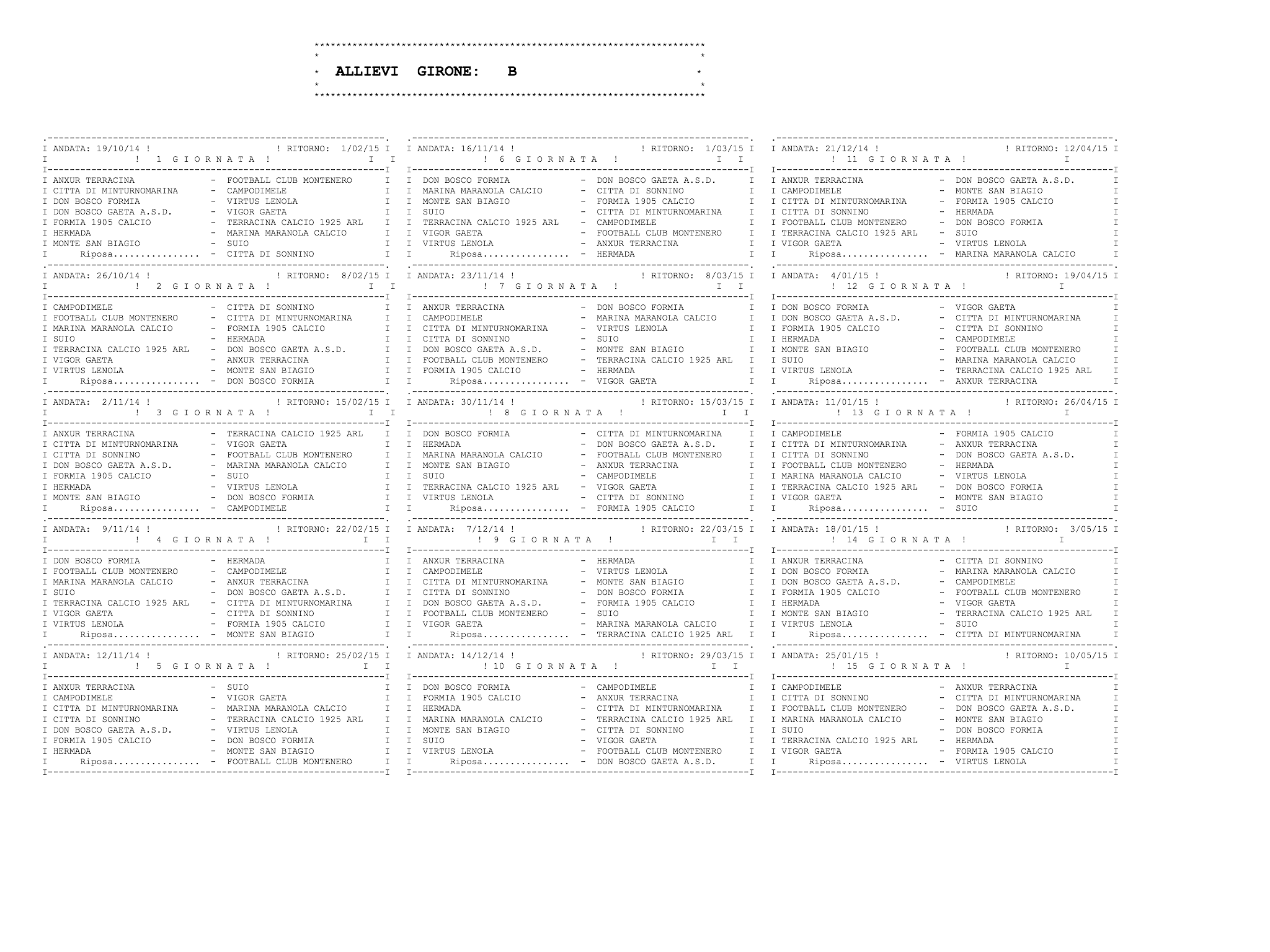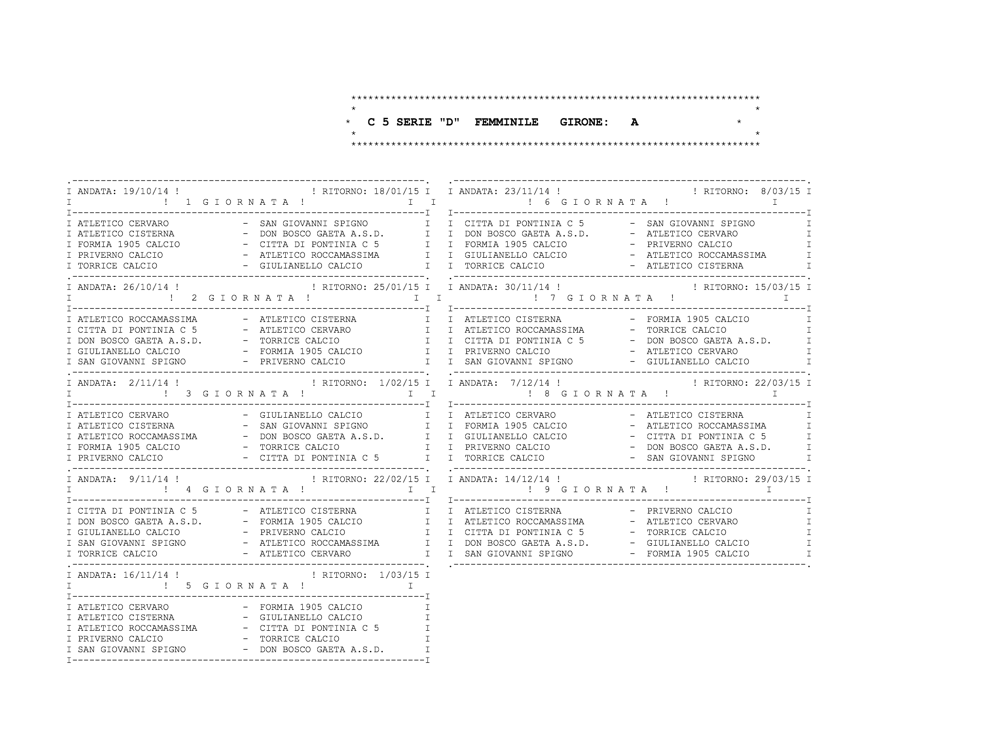 Ecco tutti i calendari al completo: