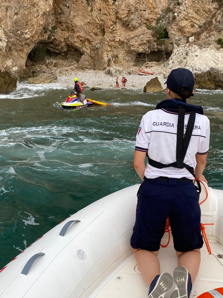 La Grotta dei Prigionieri – ricordiamo – è un luogo accessibile soltanto dal mare, con una piccola spiaggia antistante, da cui è impossibile allontanarsi quando si alza la marea. Questo tratto di mare, che può improvvisamente diventare piuttosto pericoloso, è tra le altre cose interdetto alla navigazione per il pericolo di caduta massi dalla ordinanza n. 68/2016 del 05.07.2016 dell’Ufficio Circondariale Marittimo di Terracina.