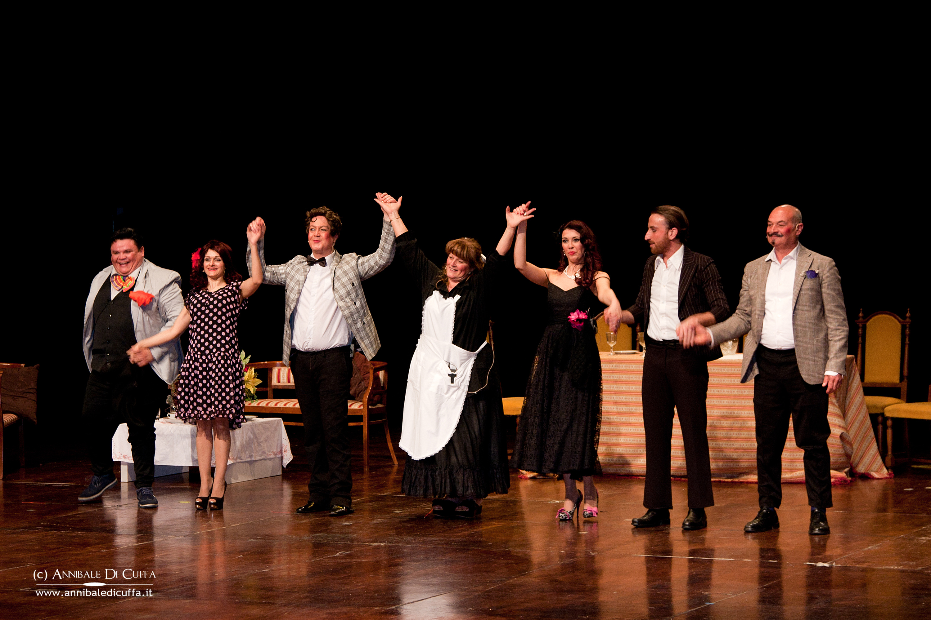 Le protagoniste femminili Leda Panaccione e Martina Miele, rispettivamente donna Lucia e donna Carmela, hanno saputo dare un sapore speciale e impeccabile all’intero spettacolo, con il giusto mix di ironia, fascino, complicità e precisione nel ritmo interpretativo. La presenza scenica e la comicità di Gaetano Franzese, alias don Gennaro detto “il cazzone”, hanno ammaliato ancora una volta il pubblico senza minimamente deludere le aspettative. Marco Manuel De Rosa, Massimo Nese e Gianni Valente (rispettivamente nel ruolo di don Salvatore, Luigi e Gigino) hanno saputo dare il giusto tocco ingenuo, grottesco, divertente al limite del ridicolo, come da copione, a tutto il parterre artistico maschile. Non poteva mancare il cammeo dell’autrice Anna De Santis, in scena nel secondo atto, con grembiule e crestina nel ruolo della fidata e scaltrissima cameriera Filomena. “Il Centro Universitario Teatrale di Cassino festeggia con grande soddisfazione il successo della farsa napoletana riscosso al Manzoni – sottolinea Marco Mattei, responsabile del Cut e aggiunge che – il consenso e la soddisfazione degli oltre seicento spettatori presenti in sala non potevano essere ignorati ma, anzi, registrati e raccolti con la promessa di tornare presto in scena con una nuova farsa teatrale ancora una volta in sapor di Scarpetta”.