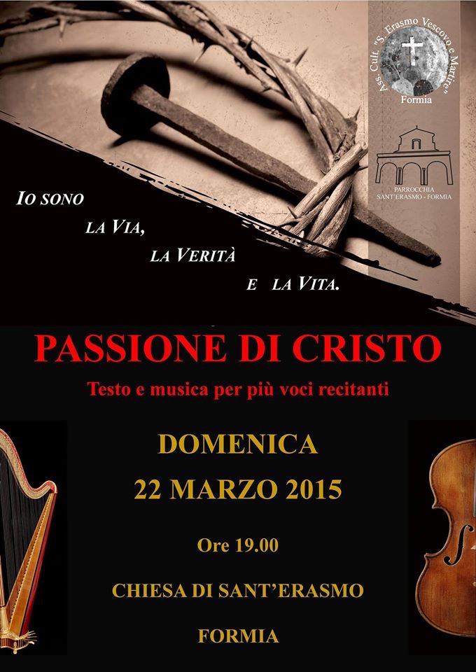 Formia, domenica 22 marzo rappresentazione della passione di Gesù presso la chiesa di S.Erasmo