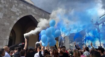 Più che le parole, gli applausi all’amico che andava via e le lacrime, hanno parlato quegli sguardi smarriti, quel tenersi…