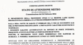 AVVISO DI CONDIZIONI METEOROLOGICHE AVVERSE Il Centro Funzionale Regionale rende noto che dalla sera/notte di domani, sabato 27 febbraio…