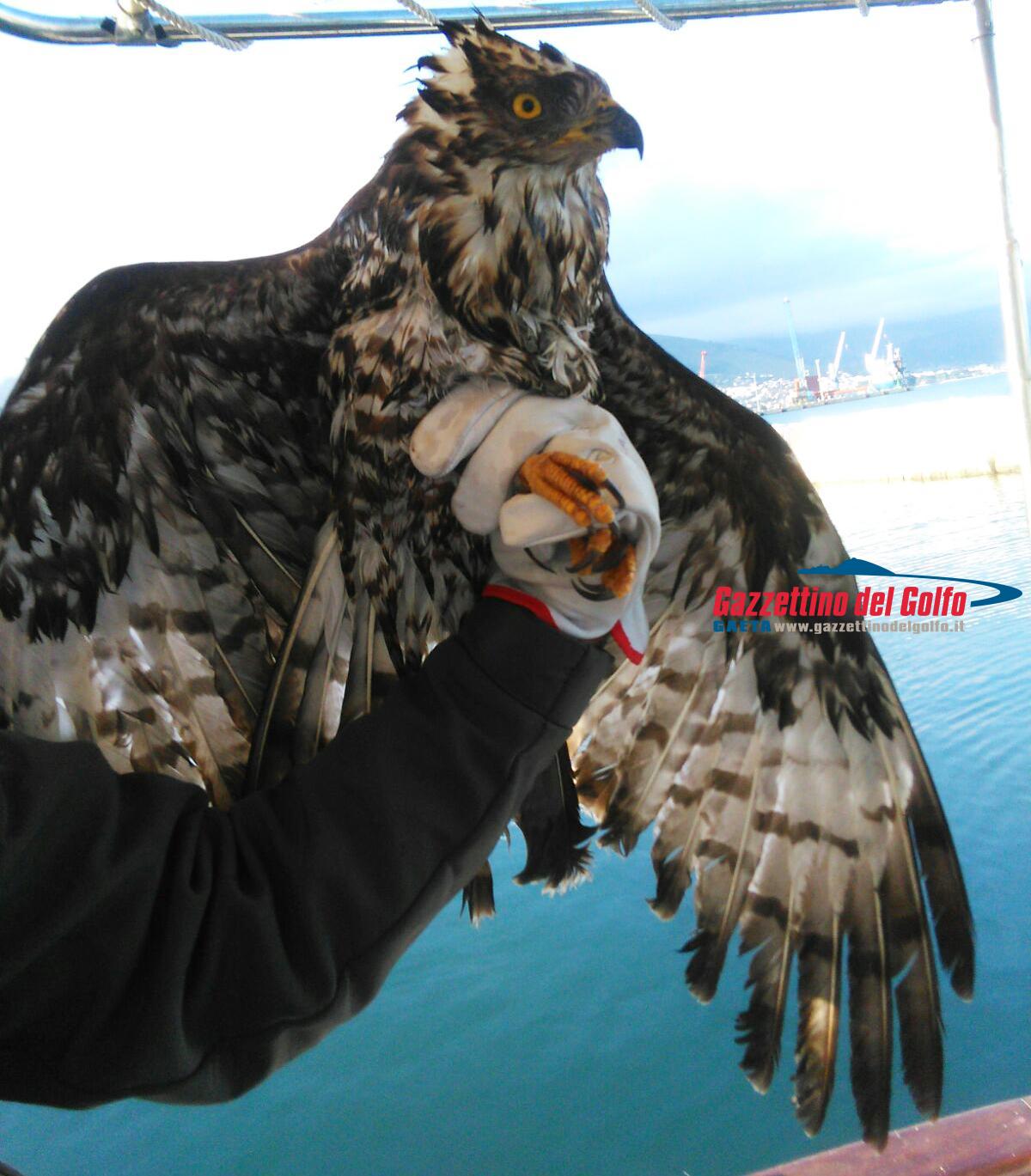 Gaeta, si gettano in mare e salvano un falco pecchiaiolo (#video)