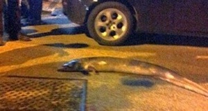 Un pesce gigante al centro della carreggiata, intervengono i carabinieri