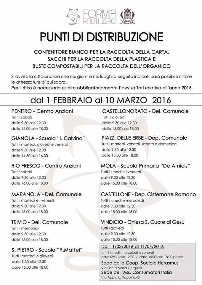 #Formia,nuovo calendario di raccolta, ecco dove e quando ritirare le nuove attrezzature