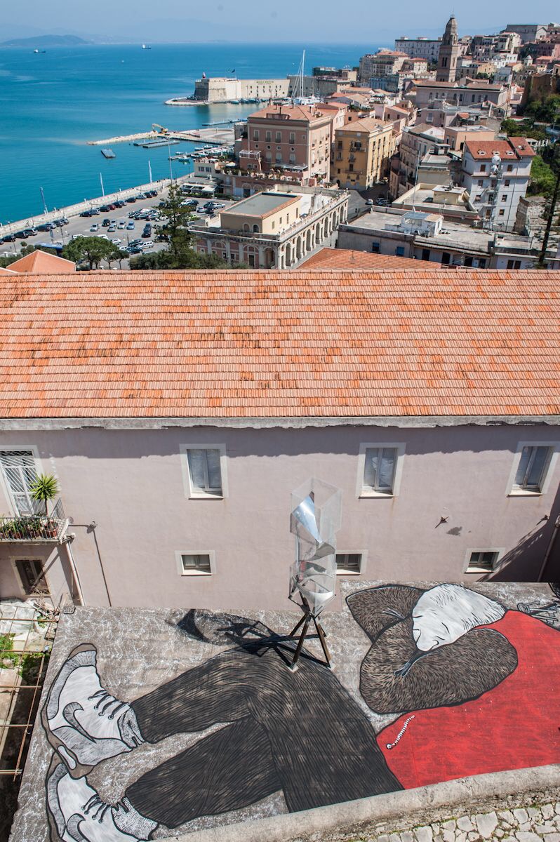 Suggestiva ed in completa armonia col paesaggio, che quasi “avvolge“, come in una culla; è l’ultima opera realizzata nei giorni scorsi dagli artisti ELLA & PITR presso il Museo d’Arte Contemporanea Giovanni da Gaeta.