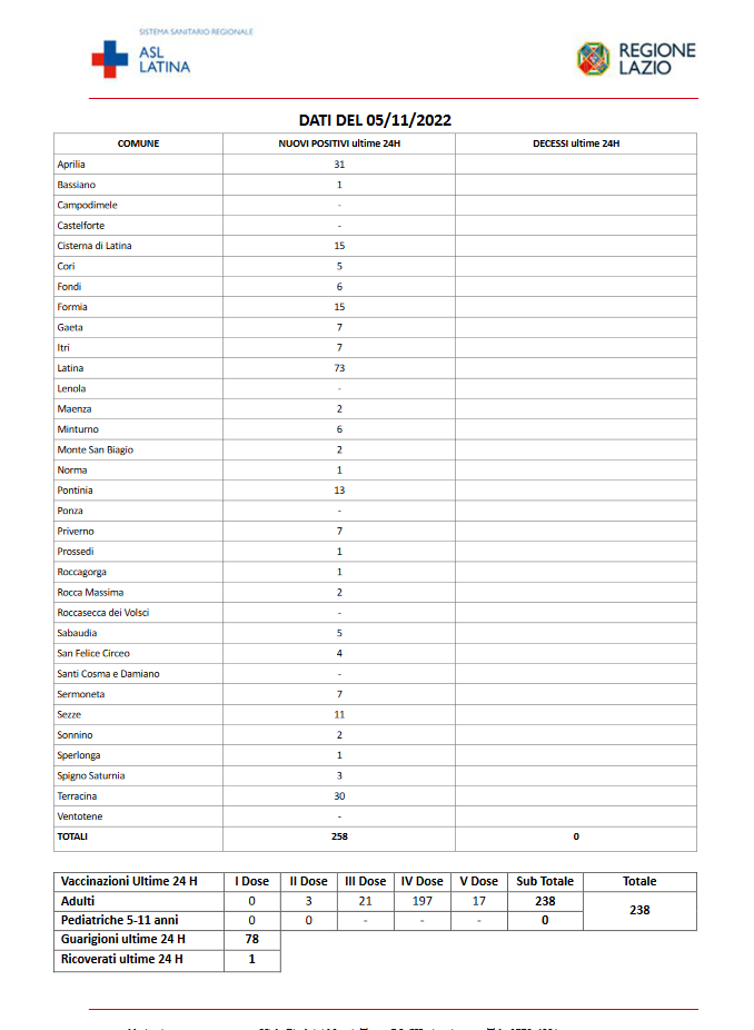 /covid-19-bollettino-del-5-novembre-258-i-nuovi-casi-in-provincia-di-latina/amp/