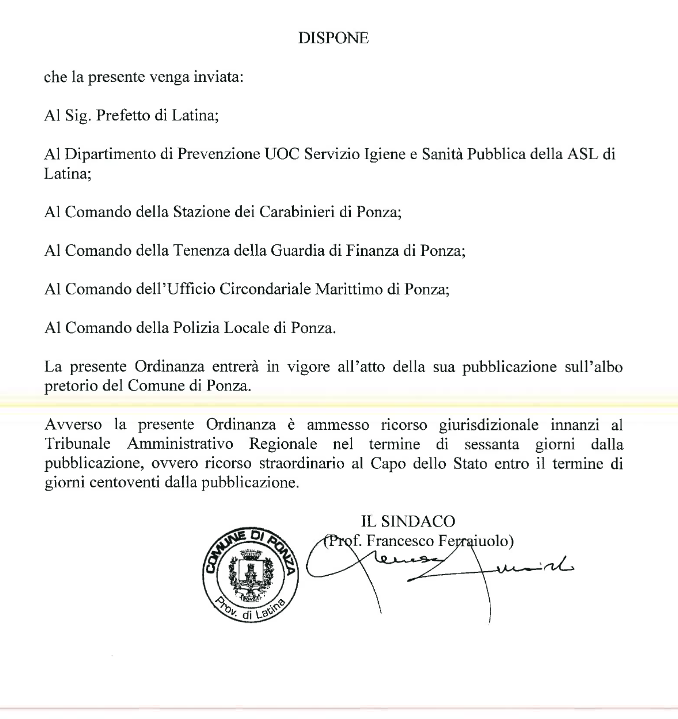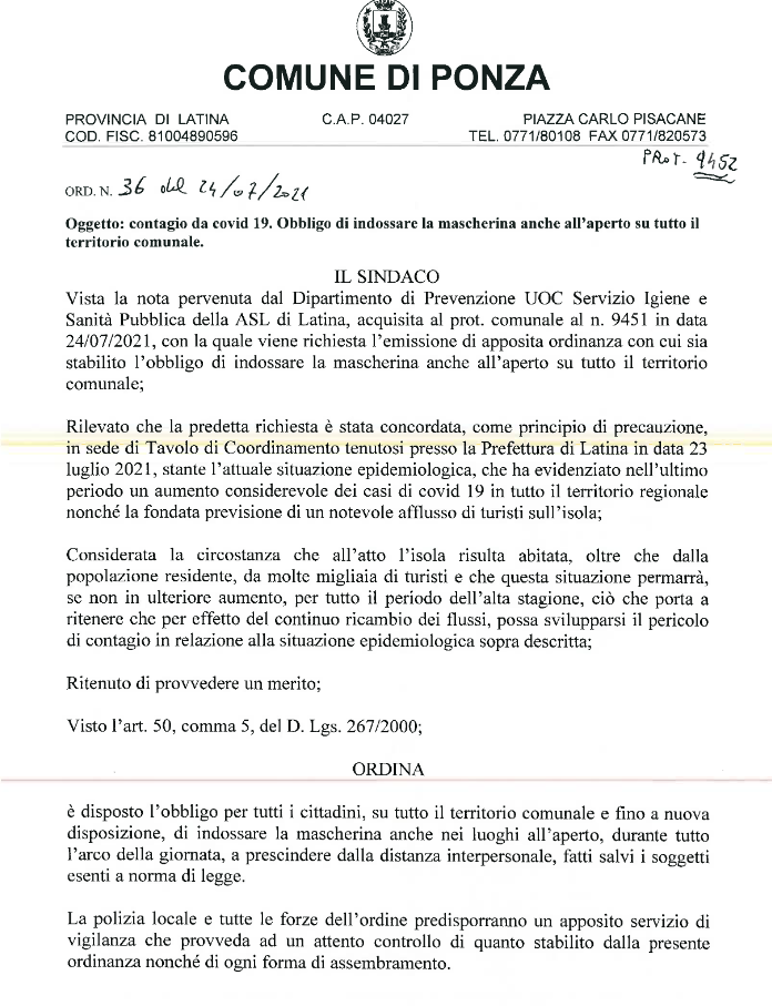 Le misure provengono dalle ordinanze dei sindaci a fronte dell’aumento dei contagi registrati nei giorni scorsi nel territorio pontino. Dopo le ordinanze del sindaco di San felice Circeo anche a Ponza obbligo mascherina anche all’aperto a prescindere dall’orario.