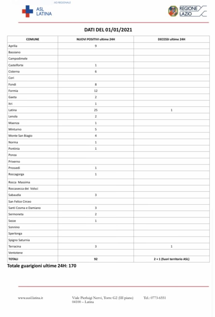 Covid, il bollettino dell’ asl latina del 1 gennaio registra 92 nuovi casi e 3 decessi di cui uno fuori provincia