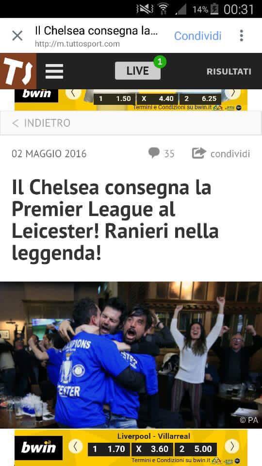 Con l’intento di festeggiare l’addio al celibato di Fabio, i tre prendono il primo volo per Leicester, con la speranza partecipare alla festa per la vittoria del titolo avendo una doppia chance, quella di domenica e quella del ‘monday night‘. È così proprio nella serata di ieri, il pareggio tra Chelsea e Spurs ha regalato il titolo al Leichester: al via la festa con il gruppo di tre amici ripresi da CNN, New York Times, BBC, L’ Equipe, Mirror, Daily Mirror, The Guardian, O Globo, El Pais, Bild, Sky Sport, Rainews, Repubblica, Corriere dello Sport.