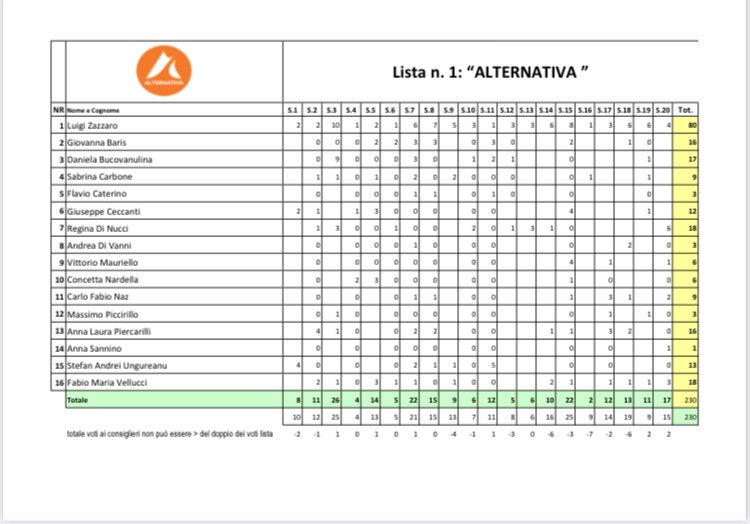 Elezioni Gaeta 2022: lista Alternativa, i risultati di tutti i candidati