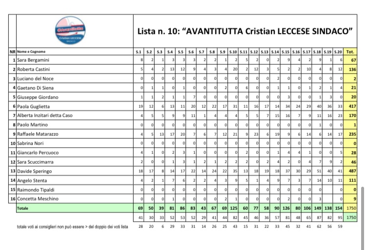 Gaeta Elezioni Gaeta 2022: lista Avantitutta, i risultati di tutti i candidati