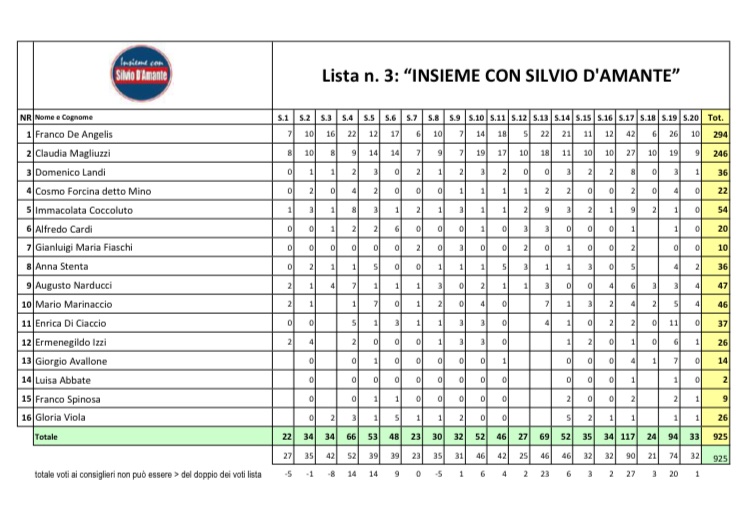 Elezioni Gaeta 2022: lista Insieme con Silvio D’Amante, i risultati di tutti i candidati
