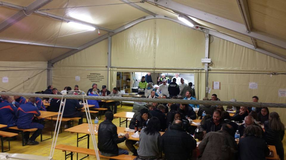Sulle montagne di Amatrice è già pieno inverno. La notte si scende sotto lo zero e l’emergenza terremoto è ancora ben lontana dal potersi dire superata. La vita degli sfollati va avanti tra mille disagi. Prosegue anche il lavoro della Protezione Civile e di tutti gli altri volontari impegnati nelle operazioni di ricostruzione dei territori colpiti dalle scosse di terremoto avvenute in sequenza a partire dal 24 ottobre scorso. Sabato presso il campo di Torrita è stata attivata una delle tre cucine volute dalla Regione Lazio e dal Comune di Amatrice, affidata al coordinamento FE.P.I.VOL (Federazione Pronto Impiego Volontari) del presidente Roberto Cotterli. In questa prima settimana la struttura è gestita da varie associazioni del nostro territorio (“VER Sud Pontino” di Formia, “AEGO” Castelforte, “ERI” Itri, gruppo comunale Minturno, Associazione “Petrucci” Sabaudia e “GIP” di Roccasecca dei Volsci) sotto il coordinamento di Antonio Tomao, responsabile del “VER”, il gruppo di Protezione Civile convenzionato con il Comune di Formia.