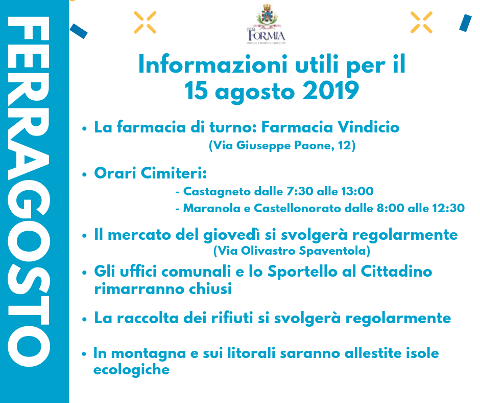 Inoltre, ecco, di seguito, alcune informazioni utili relative alla giornata di domani 15 agosto 2019