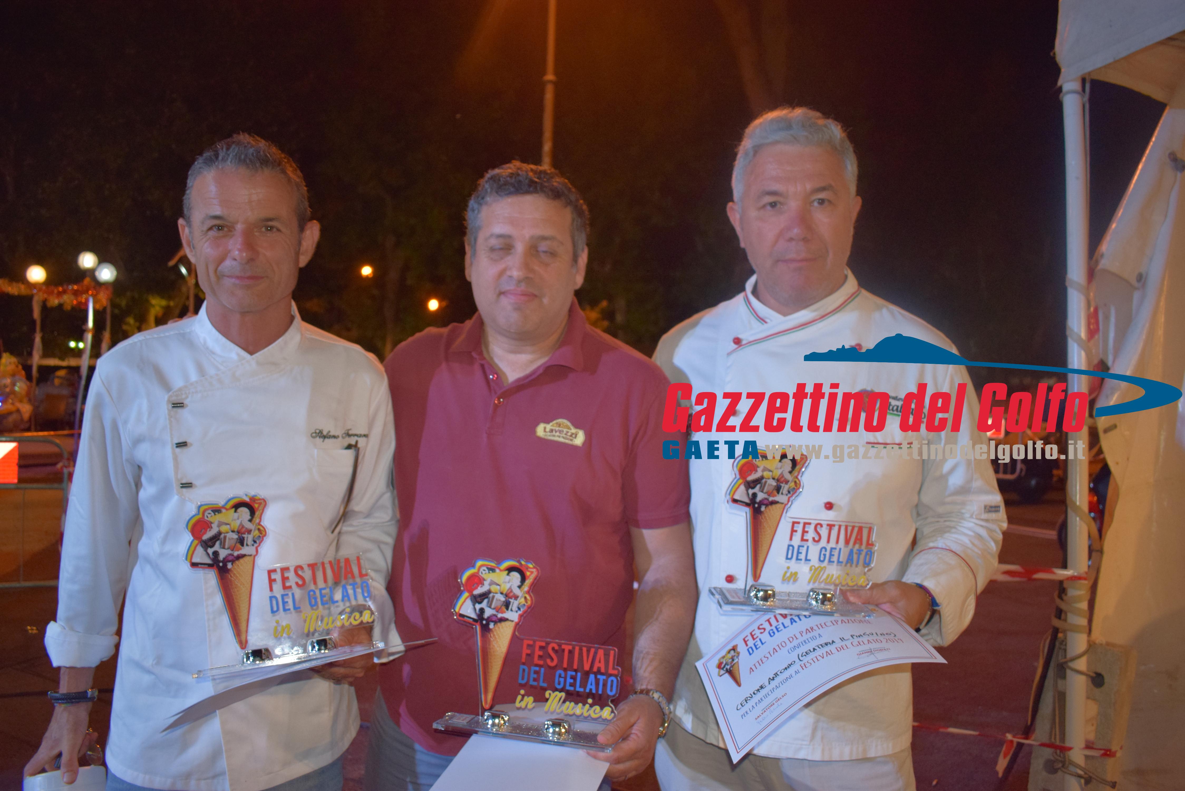 Per il Gelato, grazie anche alla partecipazione di un giurato speciale, ovvero Claudio Pica, per l’Associazione Italiana Gelatieri, il quale ha condotto i giurati ai seguenti verdetti: sono saliti sul podio Antonio Cervone della Gelateria Il Pinguino di Gaeta al terzo gradino, il Pinguino di Roma al secondo gradino ed al primo Raffaele Lavezzi della Gelateria Lavezzi di Formia.