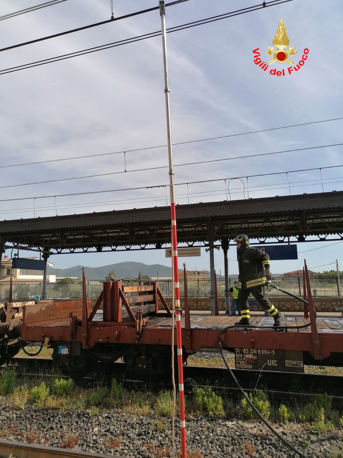 L’ intervento dei Vigili del fuoco è valso a limitare i danni delle fiamme al pianale del vagone.