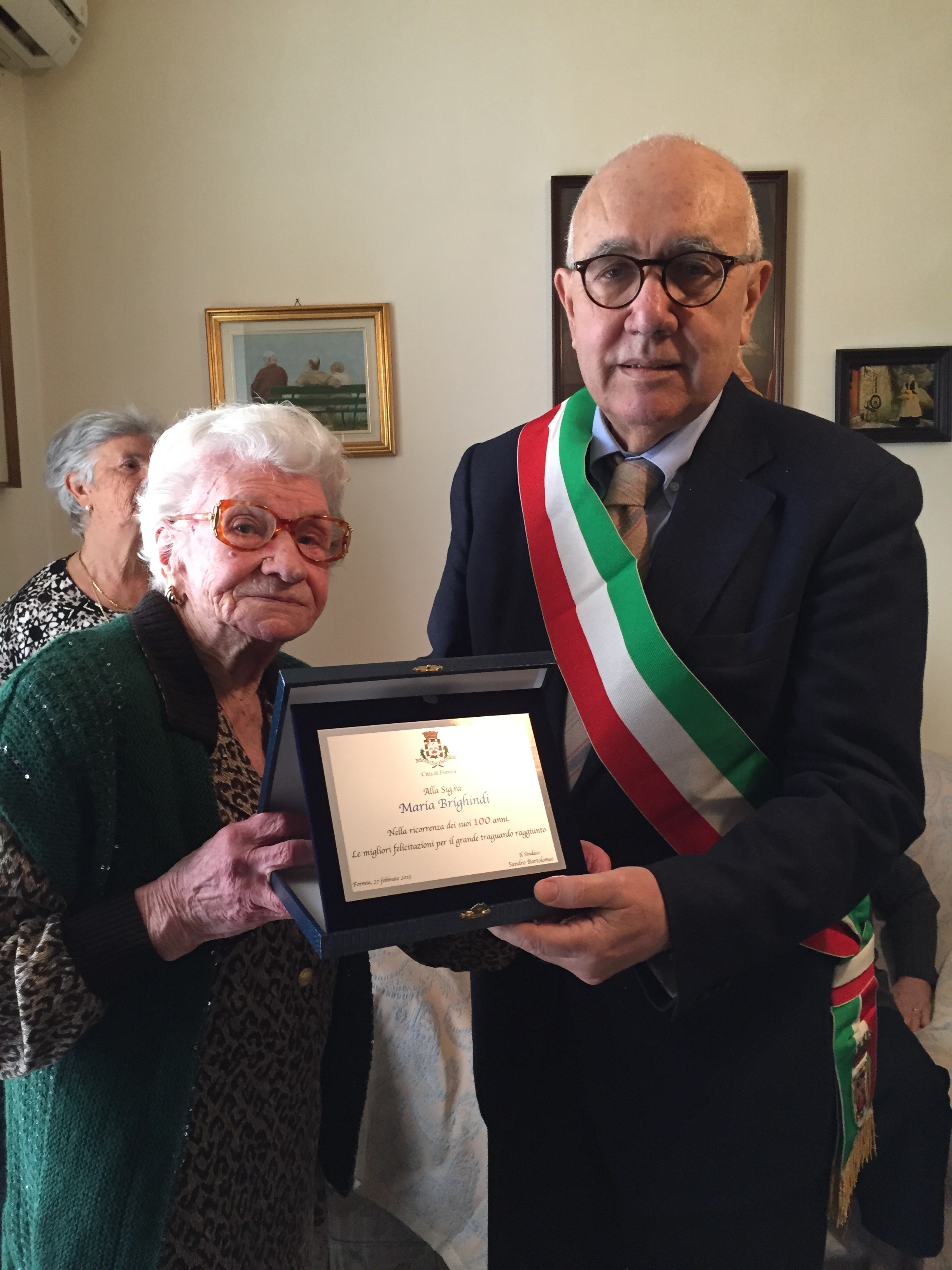 Questa mattina il Sindaco Sandro Bartolomeo ha fatto visita alla signora Maria Brighindi che oggi compie cento anni. Nata a Frosinone il 27 febbraio del 1915, vive a Formia da circa 80 anni. Mamma, supernonna e instancabile bisnonna. Fondò il ristorante “La Ciociara”, ancora oggi sito in via Divisione Julia. Al termine della festa che ha visto nonna Maria circondata dall’affetto di tutta la famiglia, il Sindaco ha consegnato alla festeggiata una targa ricordo, esprimendole le felicitazioni a nome suo personale e dell’intera città.