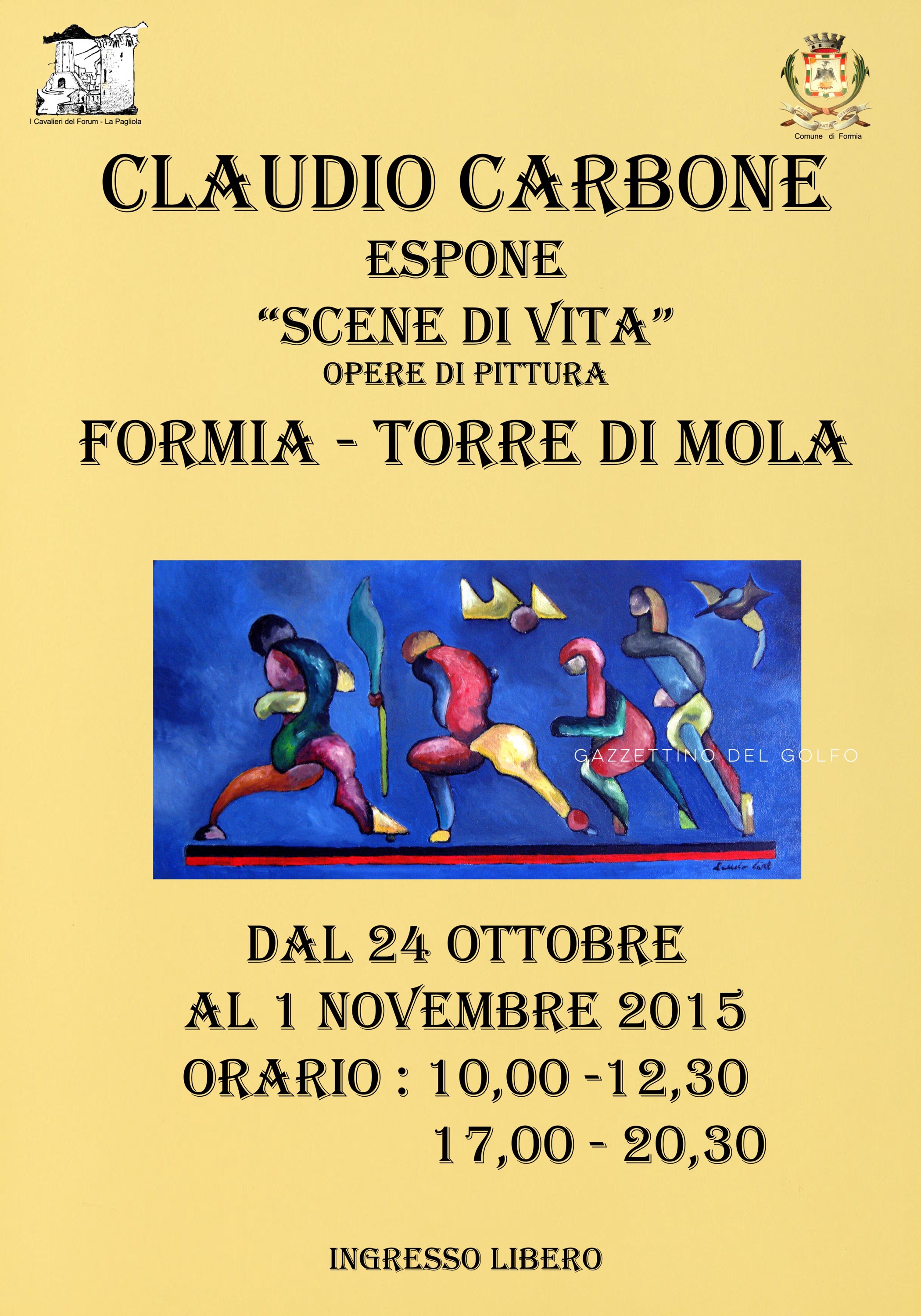 Ancora oggi la storia plurimillenaria dell’Egitto continua a raccontare al mondo di Piramidi e Faraoni, di grandi condottieri e sacerdoti. Questa civiltà unica si rende sempre più attuale continuando a rivelarsi ed affascinare generazione dopo generazione. Di questo fascino risente l’opera pittorica di Claudio Carbone in quanto la rappresentazione trova la sua origine nei pittogrammi risalenti agli inizi della prima dinastia, cioè al tempo dei re. Fra le tante possibili rappresentazioni di un oggetto o di un’azione visibile è stata scelta, allora come adesso la più chiara ed espressiva, la pittura. Caratteristica di questa pittura è quella di aver cercato e, Carbone lo fa, di rappresentare il mondo reale entro superfici bidimensionali mediante soluzioni e accorgimenti particolari. Si è davanti ad una rappresentazione a piani spaziali scanditi in direzione della profondità del piano-parete, ma giustapponendoli uno dietro l’altro. Entro questi “registri” le figure interagiscono seguendo un ordine logico, per cui possono essere lette, in considerazione del titolo dell’opera, con facilità. Sulla base di questo studio e nell’ottica dell’essenzialità, Carbone riesce a dare una visione pittorica, caratterizzata da un linguaggio sincronico del tutto personale, della sintesi tra simbolismo e strutturaziome espressiva. Le opere esposte presentano infatti, su uno sfondo monocromatico, blocchi compositivi quasi pittografici con stacchi netti creando ritmi e scansioni suggestive. Inoltre, mentre la ristrutturazione e riarticolazione figurativa arricchiscono la plasticità anche cromatica, la staticità delle immagini avvicina la comunicazione compositiva alla semplicità contemporanea. Giuseppe Supino