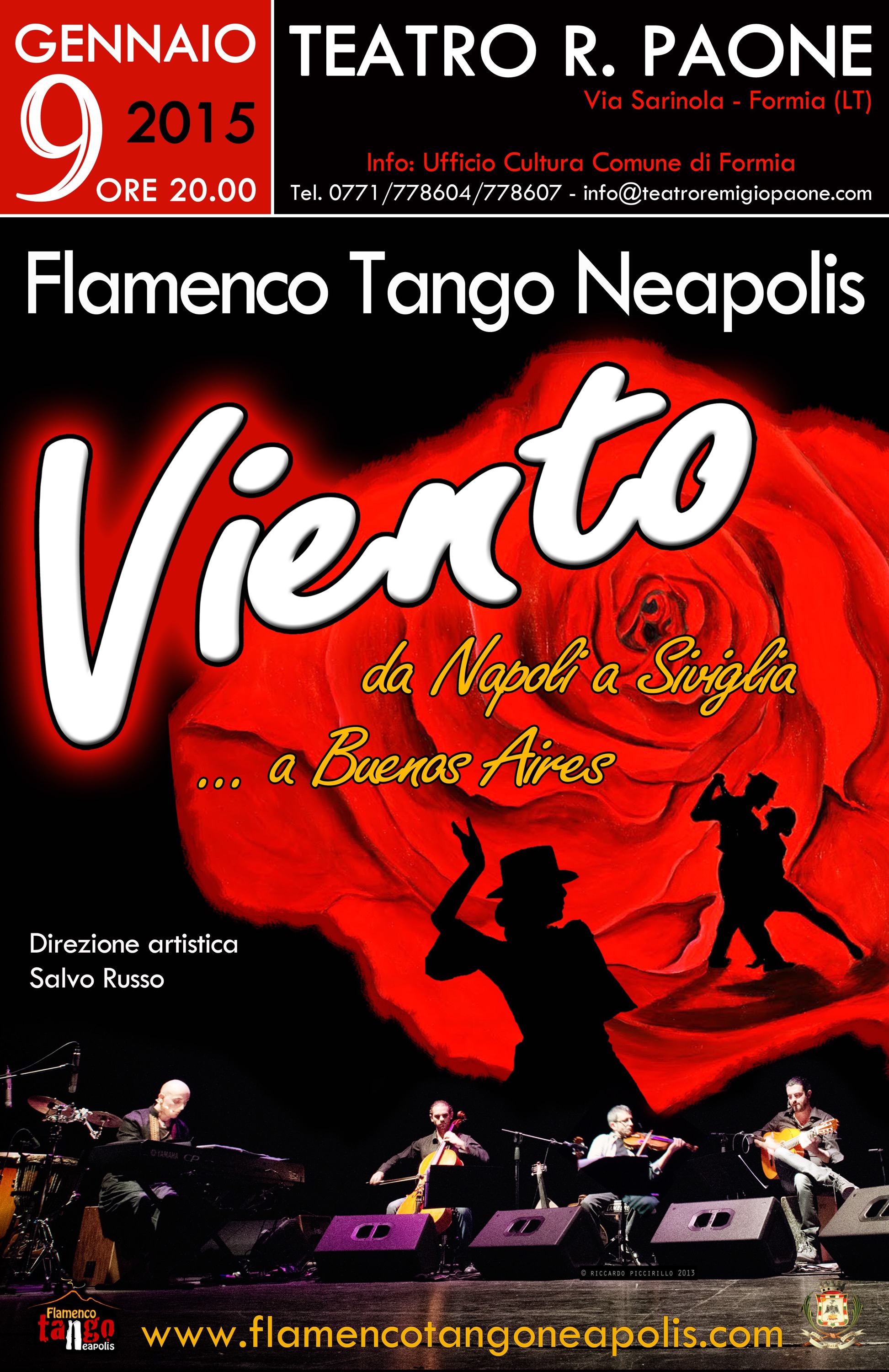 Lo spettacolo “Viento – da Napoli a Siviglia… a Buenos Aires”, promosso dall’Assessorato alla Cultura del Comune, è un affascinante viaggio in musica che, da Napoli, parte alla scoperta di un altro sud, delle sue tradizioni ed energia, del suo patrimonio di emozioni. Le musiche (composizioni originali e arrangiamenti di Salvo Russo) rappresentano l’essenza di una contaminazione che sfoglia pagine antiche e le veste di nuovo, dando vita a sonorità originali ma sempre nel rispetto della tradizione.