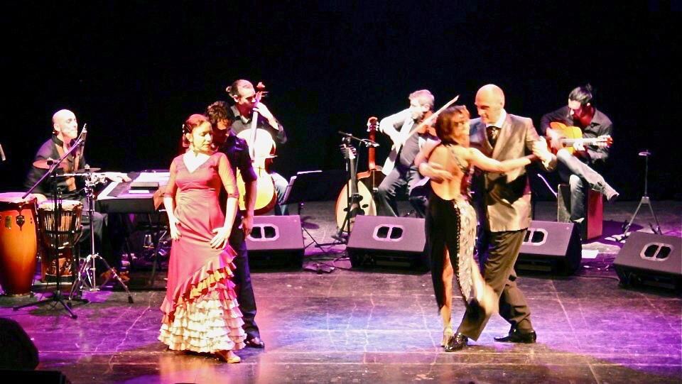 E’ così che “Scalinatella” diventa la Musa che ispira la pasiòn flamenca, che “Cerasella” ricrea l’atmosfera delle milonghe argentine e che “Lo Guarracino” irrompe con tutta l’energia di una “Buleria napulitana” in una vera e propria “juerga flamenca”. I colori di Napoli, dunque, mescolati a quelli dell’Andalusia e del Sud America esplodono musicalmente in scena creando atmosfere intense, arricchite dalla magia del baile flamenco e del tango argentino.