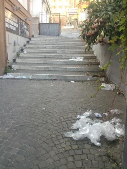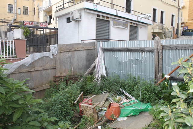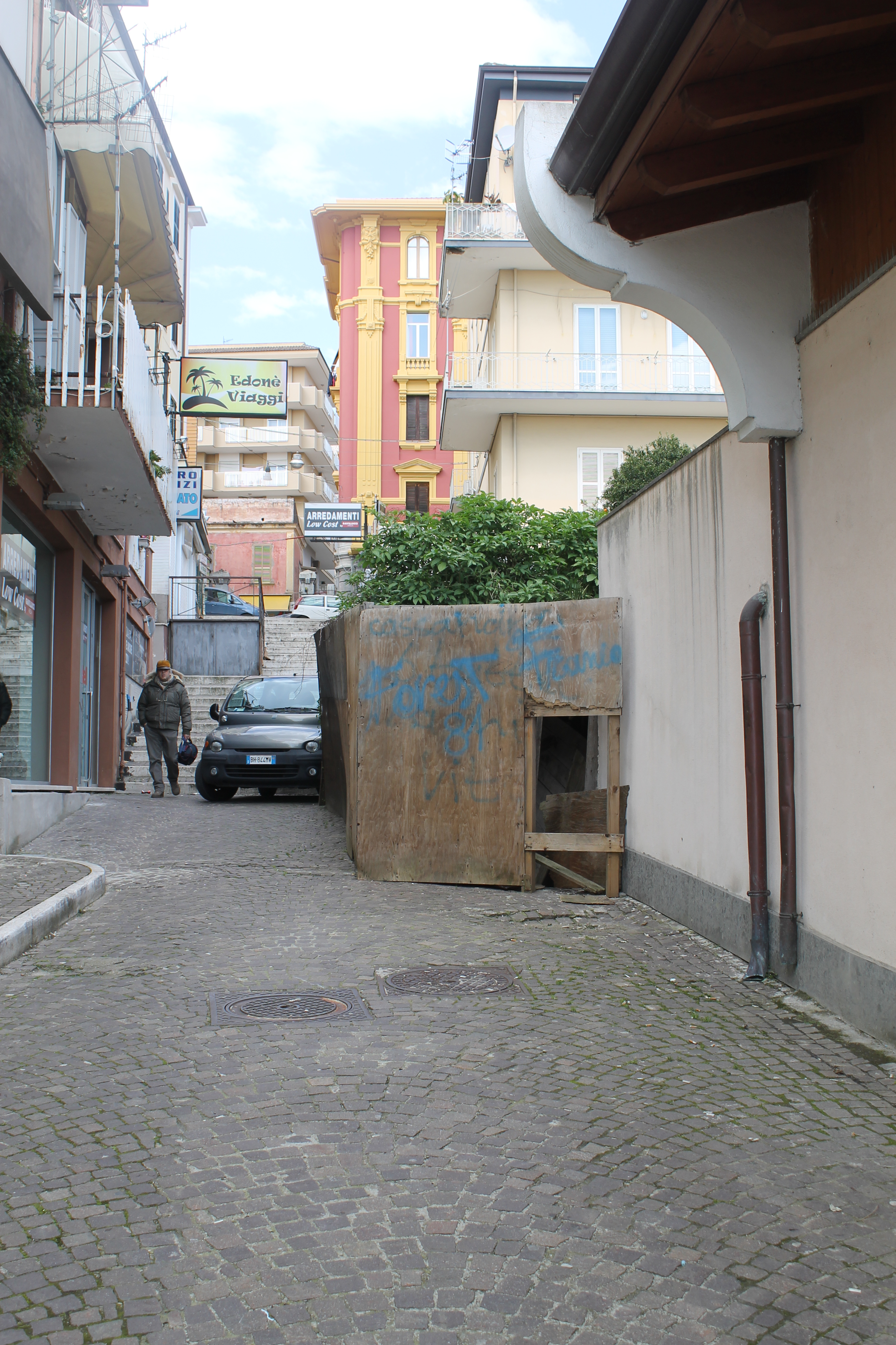 A peggiorare le condizioni l’assenza di illuminazione pubblica, una pedana in legno fatiscente di un locale sfitto ormai divenuto rifugio per gatti randagi e il cantiere ancora aperto della villa romana del I secolo con i pannelli verso il crollo per non parlare dei rifiuti e delle erbacce che coprono il sito archeologico con due preziosissime stanze, di cui una affrescata.