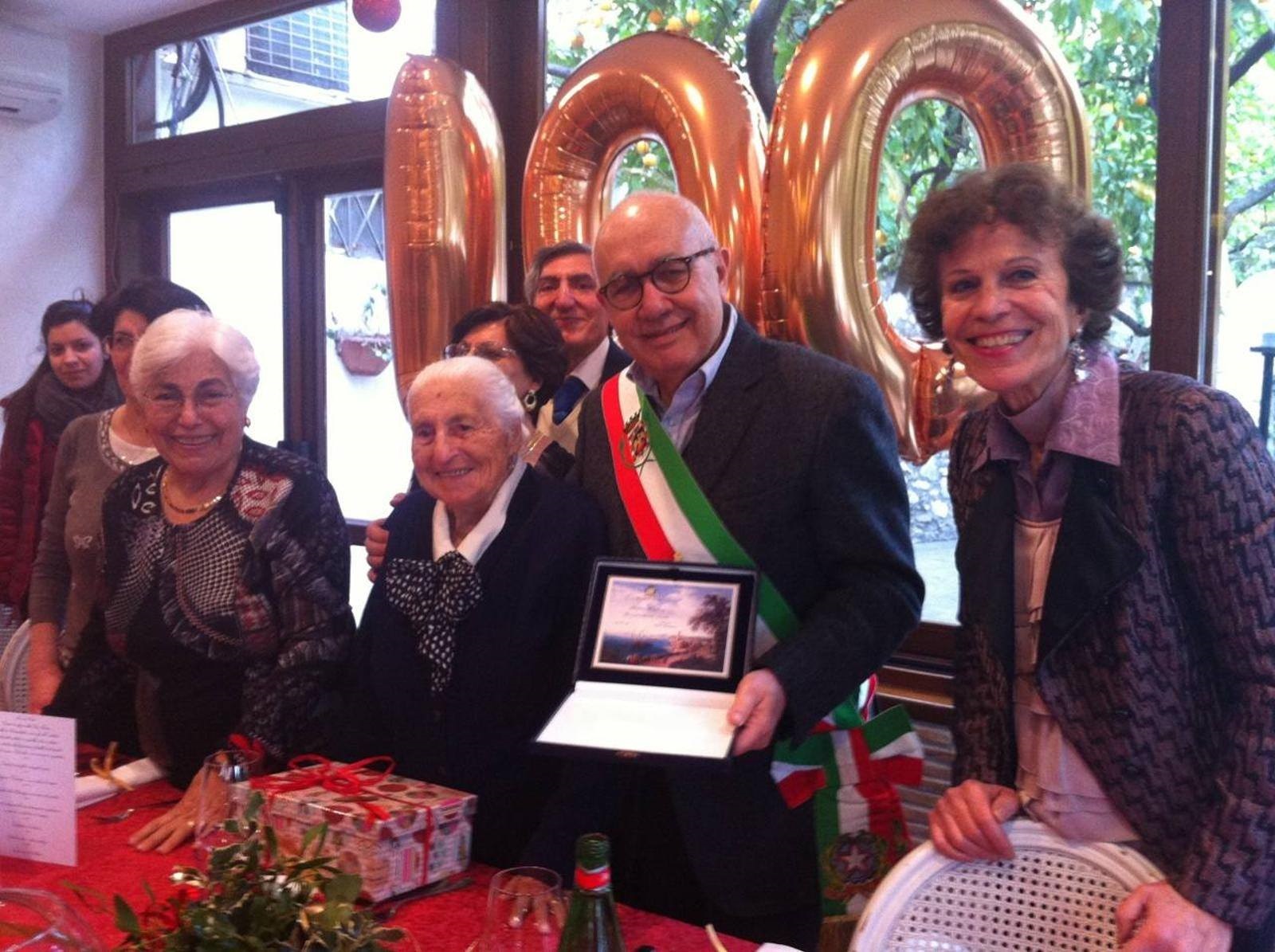 Alla festa ha preso parte anche il Sindaco Sandro Bartolomeo che ha fatto visita a nonna Annina porgendole gli auguri e consegnandole anche una targa ricordo a nome dell’intera città.