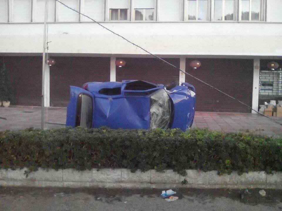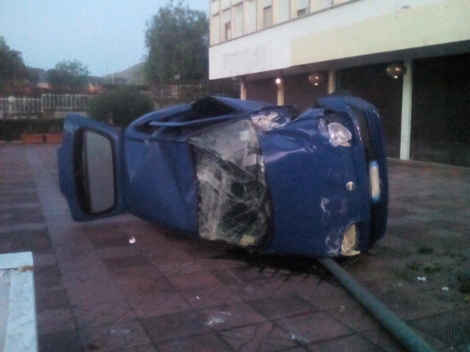 La corsa dell’auto ha, inoltre, divelto un palo pubblicitario per terminare con un salto di circa un metro e mezzo all’interno del parcheggio nei pressi del negozio cinese