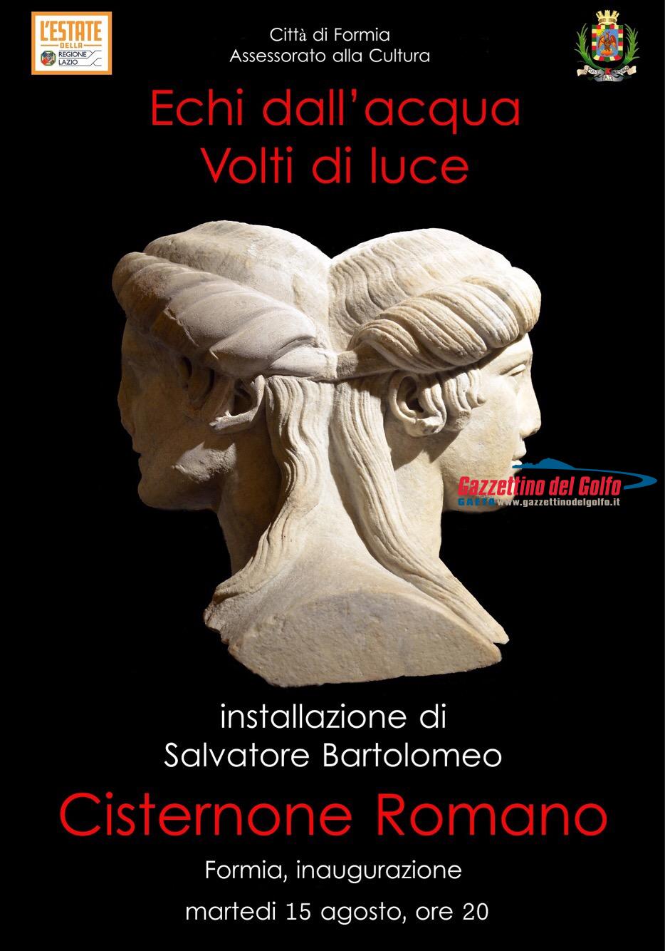 L’artista formiano ha concepito e generosamente offerto alla città una installazione multimediale con dia-proiettori collocati ad arte per dar vita e corpo alle immagini proiettate sulle pareti della cisterna: una sequenza in dissolvenza dei “volti svelati”, le sculture rinvenute nello scavo di Gianola ed oggi custodite all’interno del Museo Archeologico Nazionale di Formia.