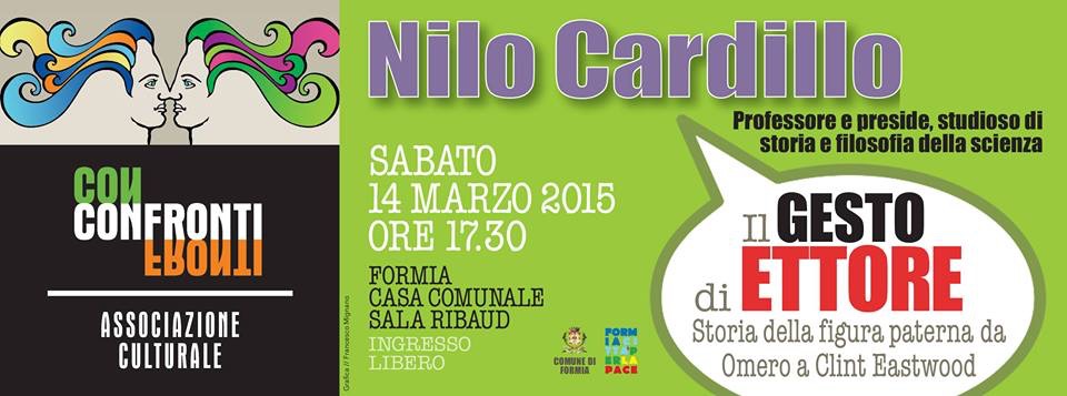 Nilo Cardillo è stato docente di storia e filosofia e preside nei Licei di Venezia , Frosolone (IS) , Pontecorvo (FR) ed infine , per 14 anni , del Liceo Classico “Vitruvio Pollione“ di Formia. Ha ottenuto riconoscimenti e borse di studio in Italia e all’estero. Ha pubblicato numerosi articoli di filosofia ,pedagogia, psicologia e didattica su numerose Riviste Nazionali e diversi libri. Attualmente è Presidente dell’ Ass. Culturale “ Grido Libero “ ed , in collaborazione con l’ Istituto Italiano per gli Studi Filosofici di Napoli , ha organizzato i seguenti convegni di studio : Gioacchino Gesmundo , Centenario della nascita , 2007 e 2009; Plotino , una memoria alta e nobile del distretto di Gaeta , 2009; Energia : prospettive e problemi , 2010; Enrico Cosenz e Giuseppe Aloia , 2010; Plotino e la Bellezza : viaggio alle sorgenti dell’estetica medievale , 2011; Linguaggio e Democrazia , 2011; Errico Amante e il figlio Bruto in relazione al Risorgimento Italiano , 2012; L’eredità degli antichi : Plotino e Giordano Bruno , 2012; La figura e l’opera di Raffaele Gigante , 2013.