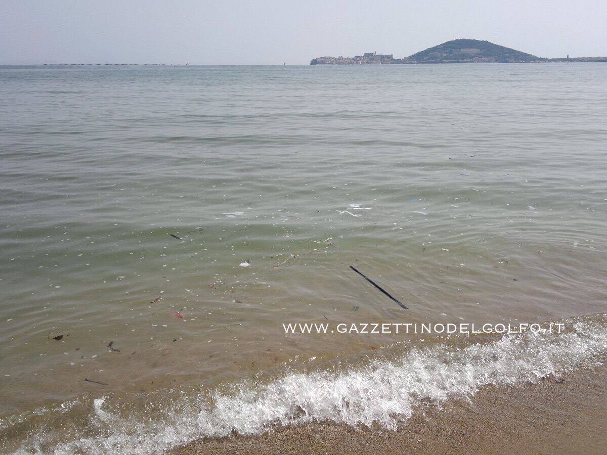 Sul bagnasciuga c’erano rifiuti di vario tipo. L’acqua era particolarmente torbida, deturpata da chiazze di schiuma bianca e rifiuti galleggianti di diversa tipologia.