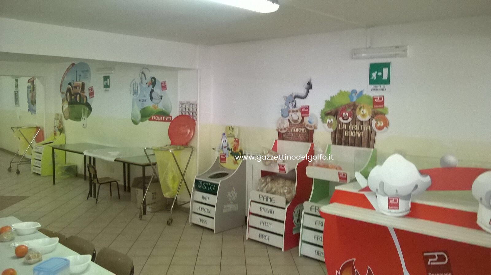 Consegnata anche la linea self service per la distribuzione dei pasti. E’ costituita da un elemento caldo a tre vasche ed uno freddo con annessa tramoggia porta-vassoi e bicchieri. All’ingresso del refettorio è posizionato l’espositore del menu. Realizzata in materiale eco-compatibile, la linea self service è caratterizzata da una grafica studiata appositamente per i piccoli fruitori del servizio di refezione scolastica.