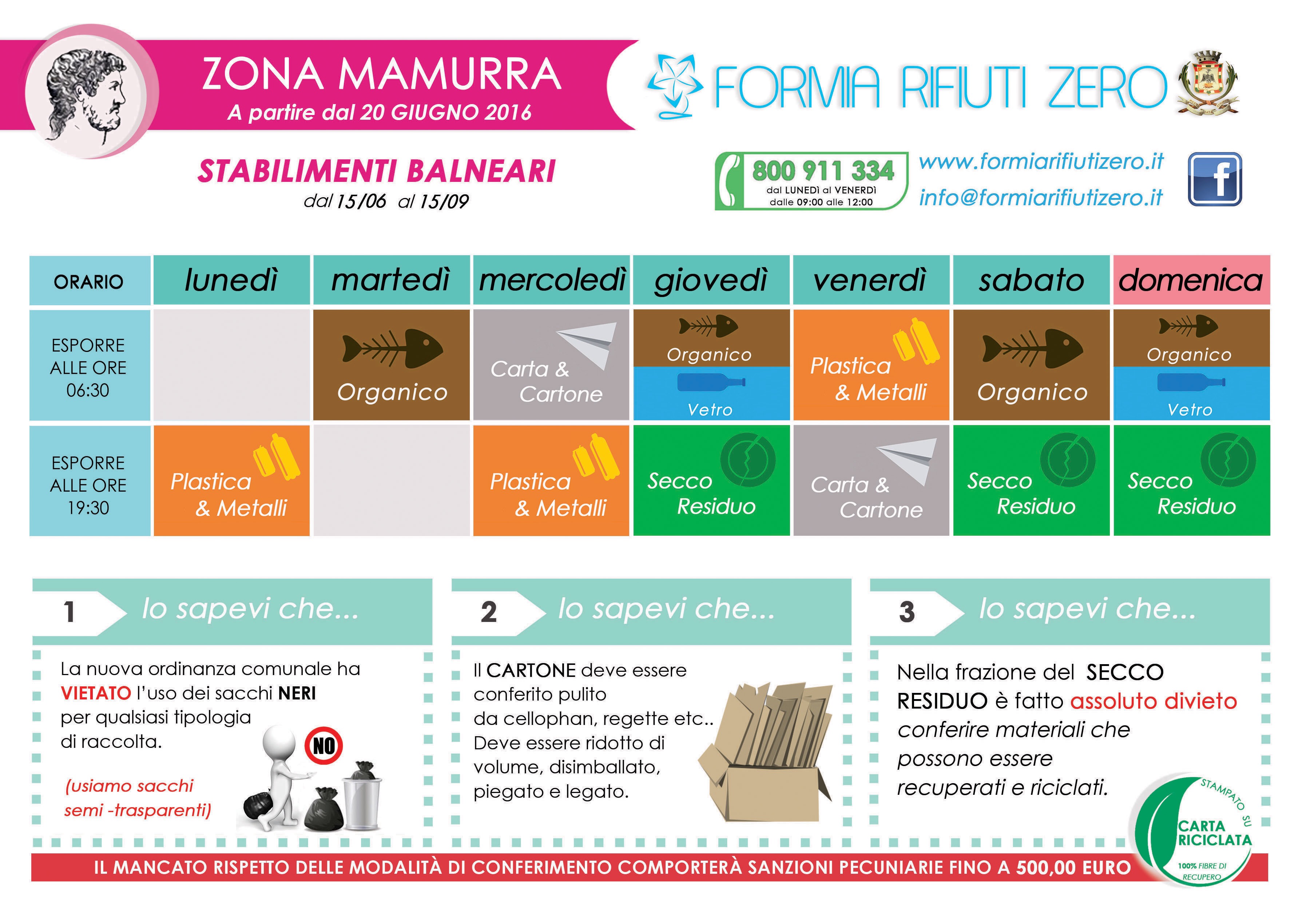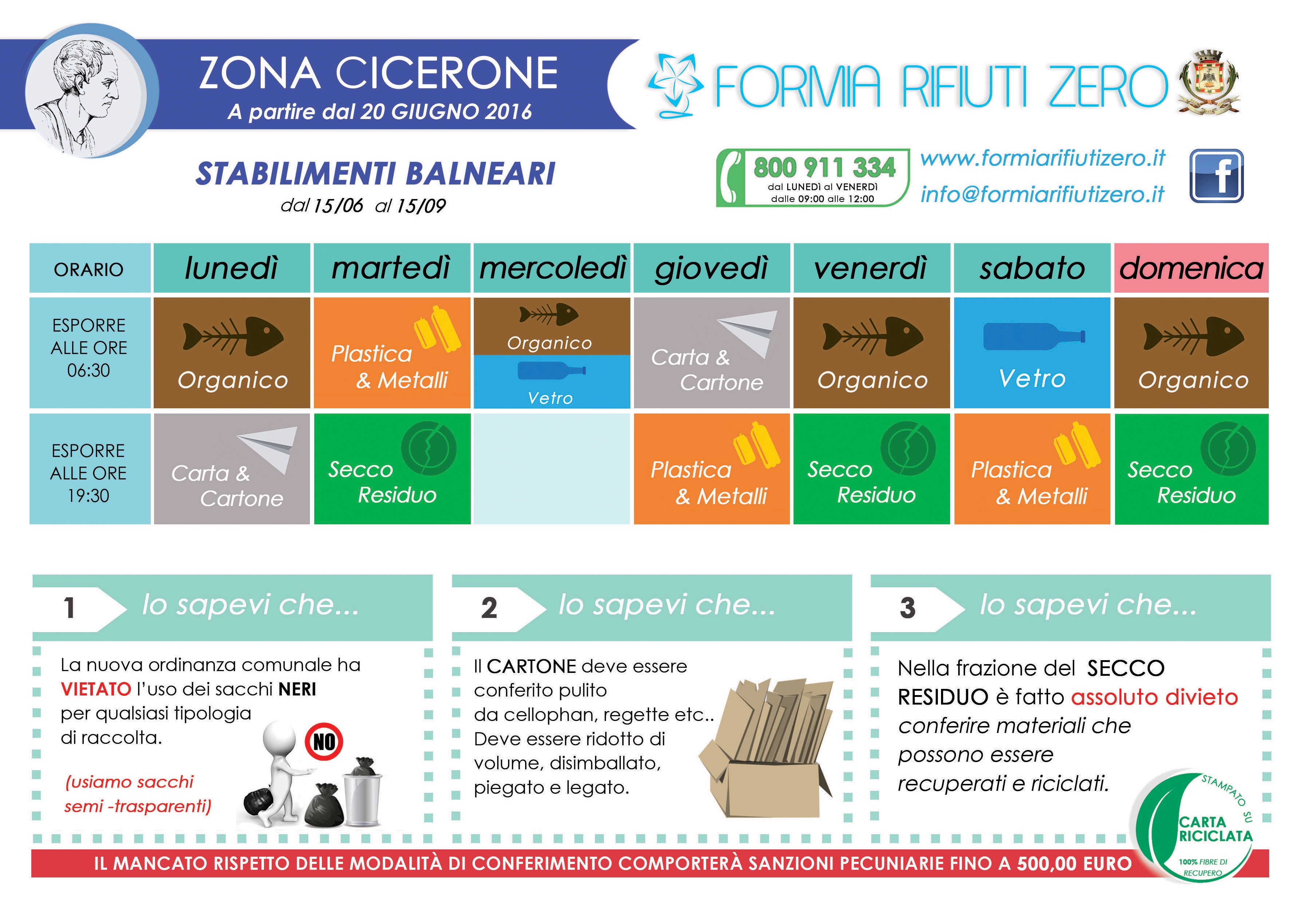 STABILIMENTI BALNEARI – Nel periodo 15/06 al 15/09 il nuovo calendario prevede una frequenza di raccolta giornaliera, garantendo un servizio “7 su 7”. La raccolta avverrà in specifiche fasce orarie (06:30 e 19:30) così da evitare l’esposizione prolungata dei rifiuti su strada garantendo il decoro e la bellezza del lungomare.