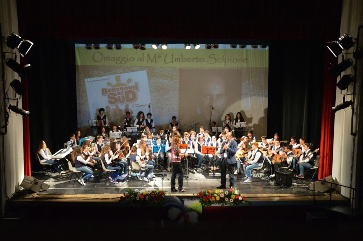 Il 26 maggio al teatro “Ariston” di Gaeta, durante lo spettacolo di fine anno “Le stagioni della vita”, organizzato e curato da alcune docenti della scuola media, l’orchestra ha reso omaggio al M° Umberto Scipione eseguendo la colonna sonora da lui composta per il film “Benvenuti al sud”, sapientemente trascritta dal direttore dell’orchestra prof. Sergio Brusca.