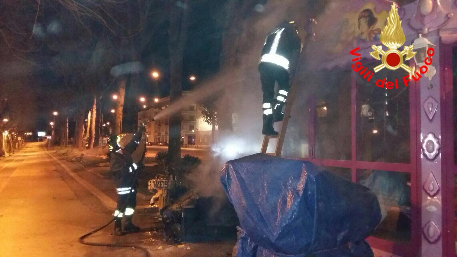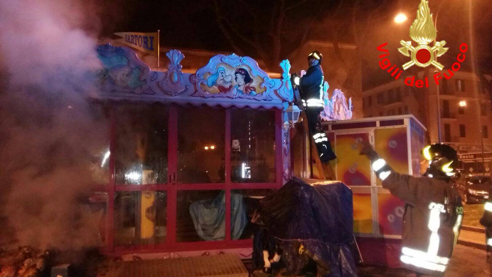 Giunto immediatamente in posto, il personale dei Vigili del fuoco prendeva atto che delle giostre erano avvolte dalle fiamme. Subito iniziavano le operazioni di spegnimento.