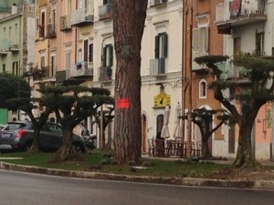 Questa la segnalazione inviataci da un lettore del Gazzettino del Golfo residente nella zona, che ha notato negli ultimi giorni la presenza di cartelli “Vendesi” affissi sul tronco dei pini con colori fluorescenti.